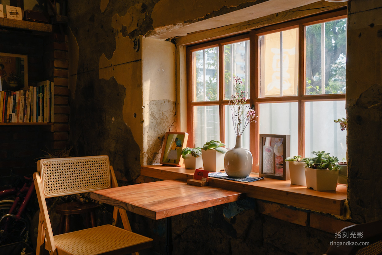 靠窗旁的座位陽光灑進來,更顯溫暖的氣氛。店內有一面書櫃,可以多加利用。
