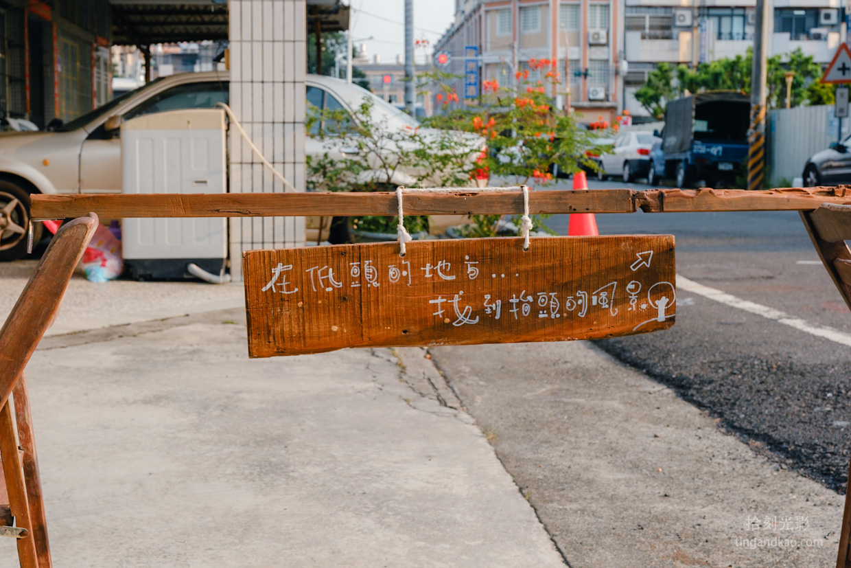 店門前的拱門設計具有巧思,店門前的標語「在低頭的地方,找到抬頭的風景」,頗有意境。