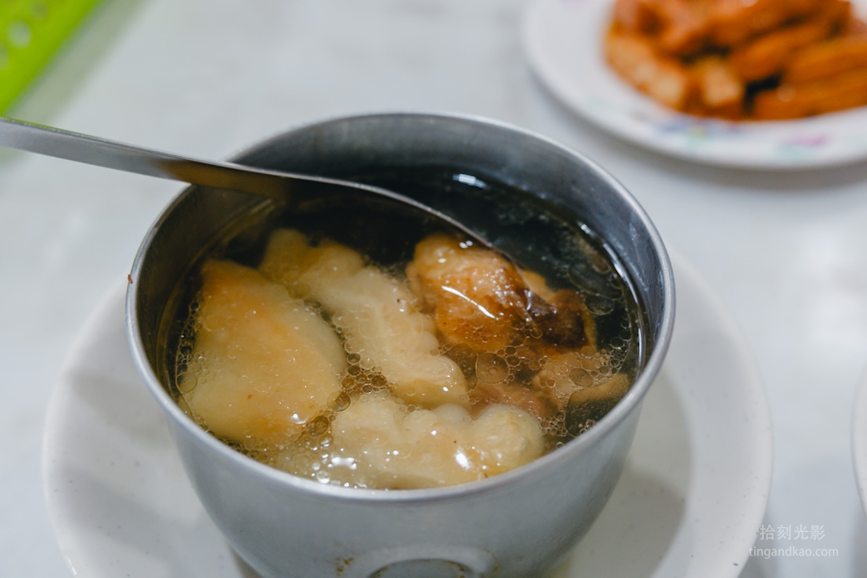 用鐵盅承裝的湯品,湯頭入味、排骨軟嫩。