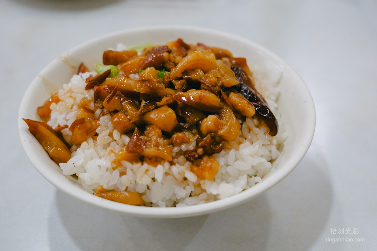 香菇魯肉飯屬於肥肉比較多的豬肉,並加入香菇一起滷製。