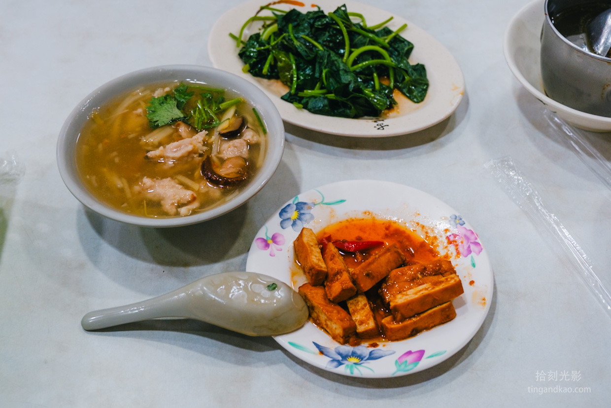小菜的部分點了豆干和滷鴨蛋,菜品為地瓜葉。