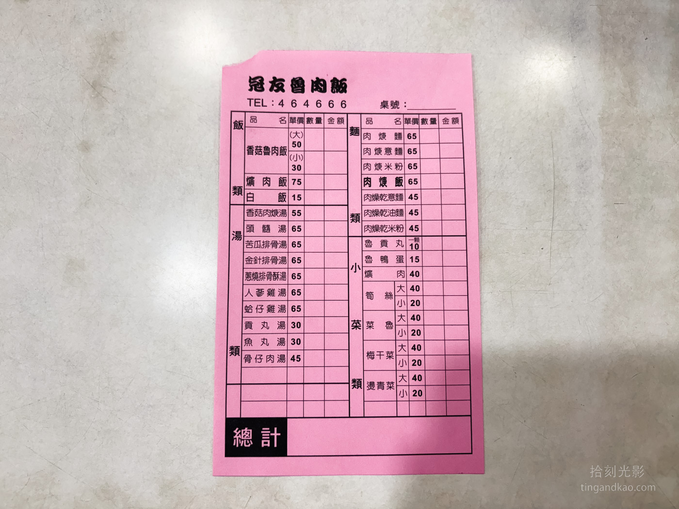 冠友魯肉飯提供,飯類、麵類、小菜和湯品類。