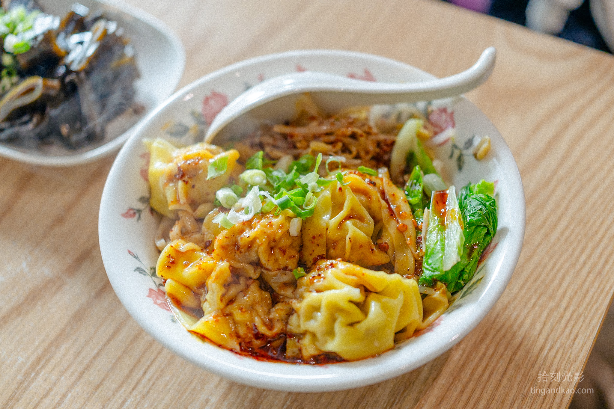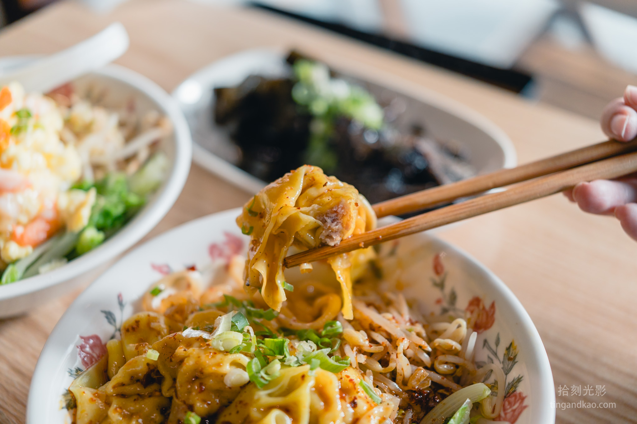 選擇店家招牌鮮肉紅油抄手,抄手有鮮肉、蝦仁、菜肉三種口味可選。麵條採用扁麵,搭配少許豆芽、青菜和蔥花,淋上特製醬汁帶有微辣口感的拌麵吃起來相當過癮。鮮肉抄手外皮帶有Q彈嚼勁,內餡飽滿且調味恰到好處。