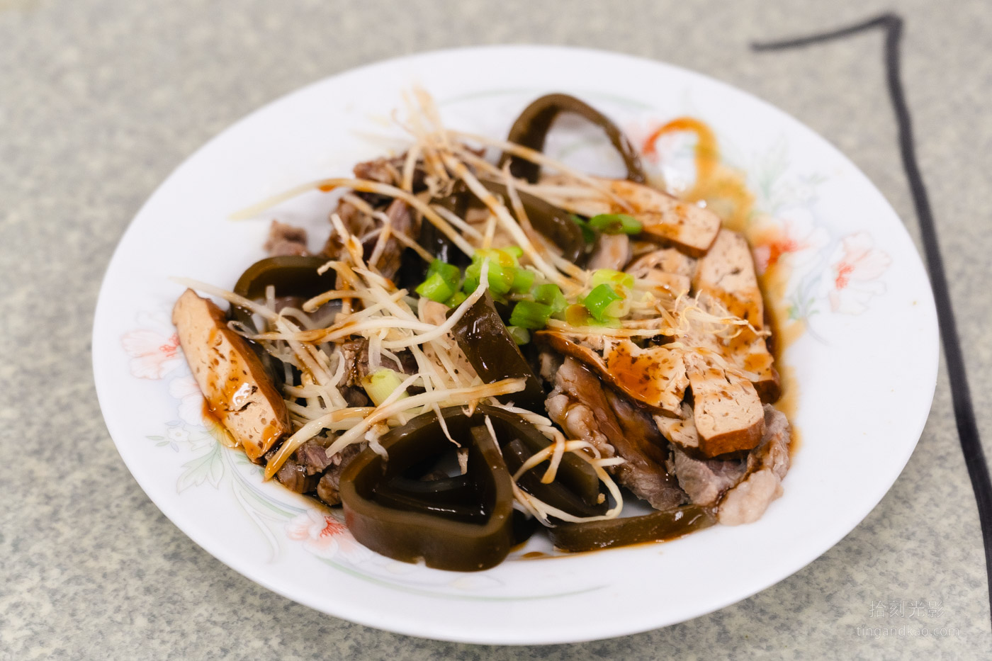 綜合小菜有豆干、海帶和豬頭骨肉。