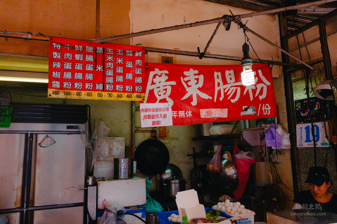 廣東腸粉提供多種口味選擇,價格介於60至100元之間,店家另外也有販售特製辣椒醬。