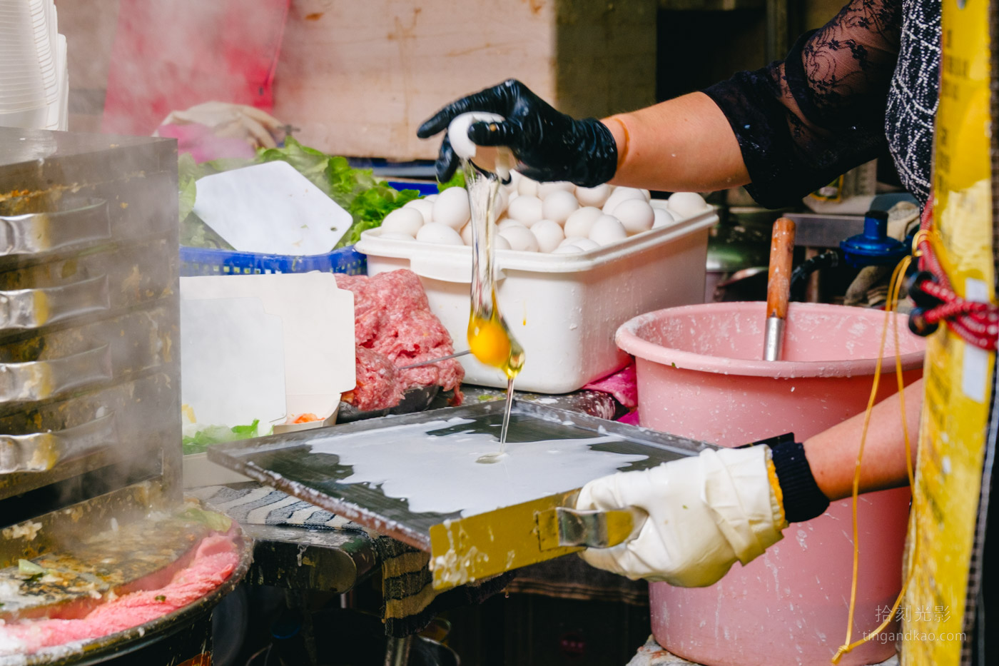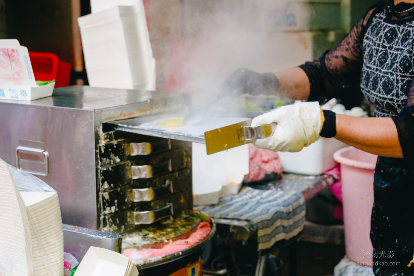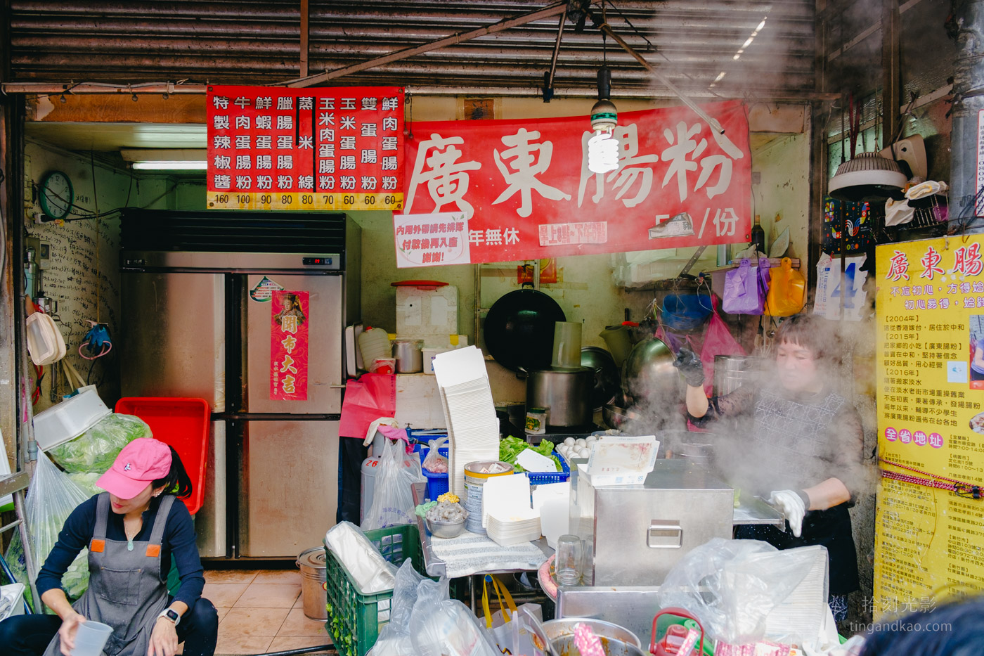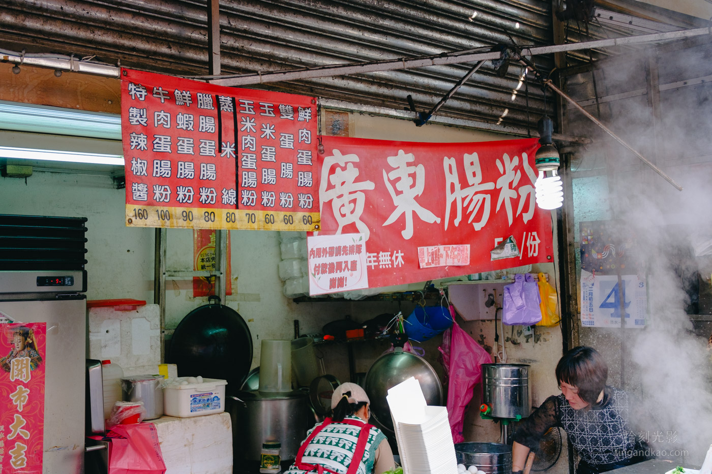 開放式的店面設計讓顧客能清楚觀看廣東腸粉的製作過程。腸粉的製作器具外型像鐵櫃子,相當特別。老闆娘手腳俐落,製作速度很快,幾乎沒有停歇的時候。