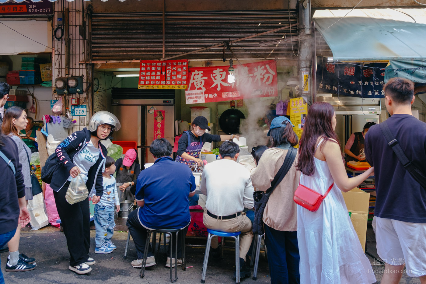 當天抵達時正值週末下午時段,門口已經排起隊伍,我們大約排了近10分鐘才入座。店家空間很小,內用座位不多,但好在廣東腸粉的翻桌率很快。