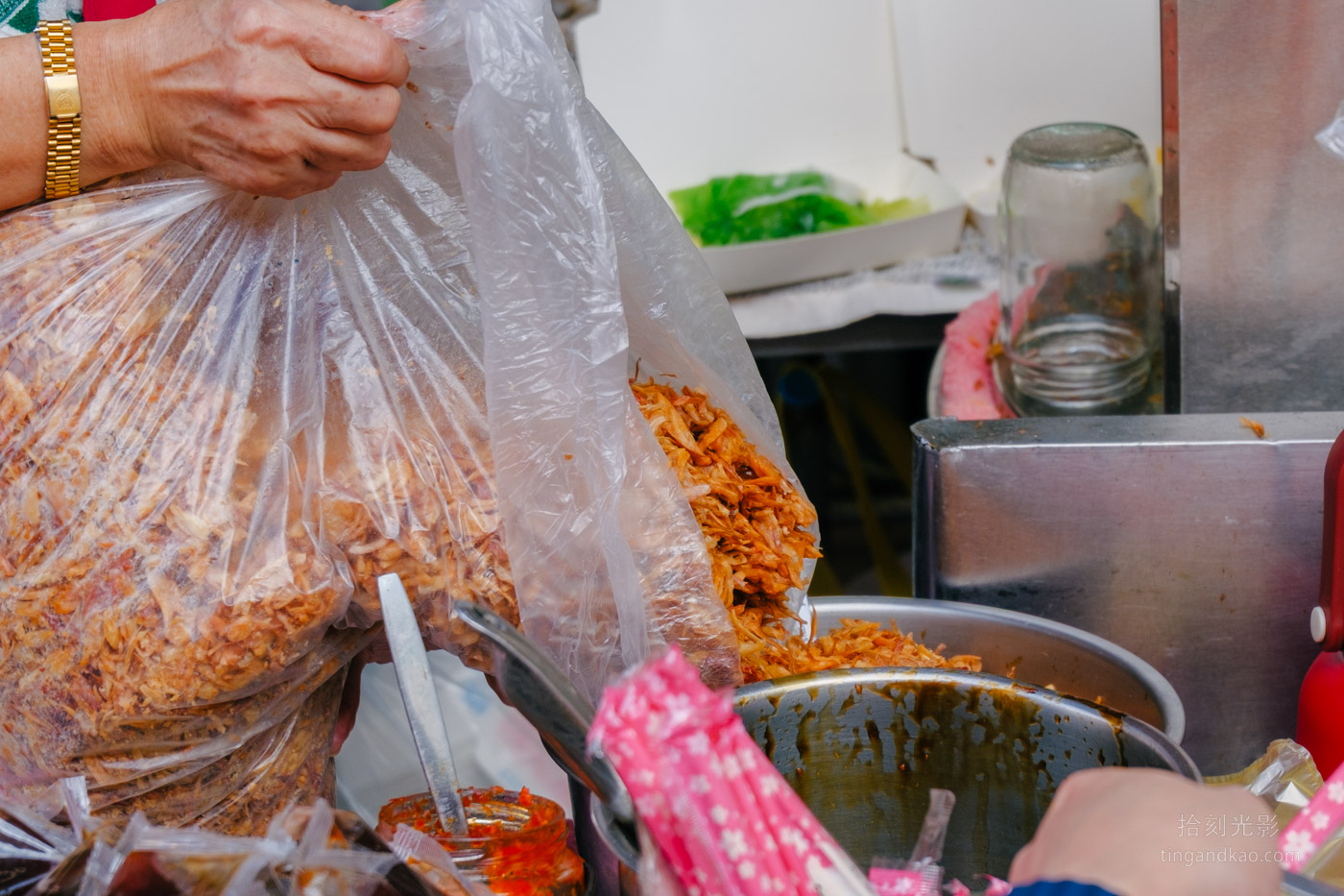 在地經營近10年來,已成為淡水當地的人氣小吃店家,每逢假日店門口總是大排長龍,顧客絡繹不絕。