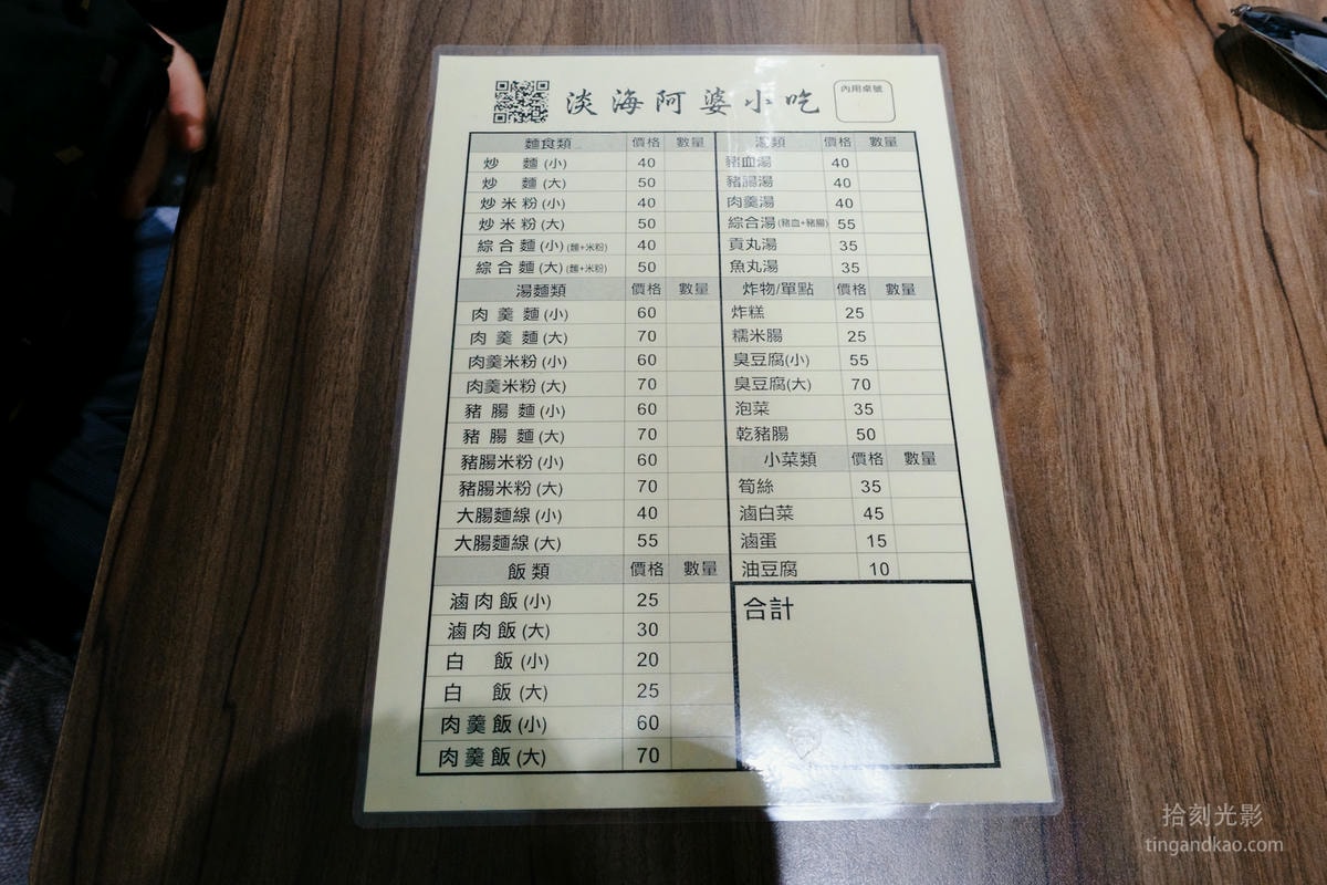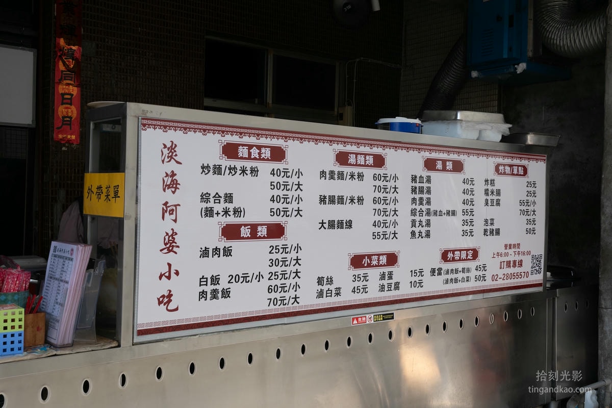 淡海阿婆小吃店的菜單如下,一些常見的小吃都可以找到。