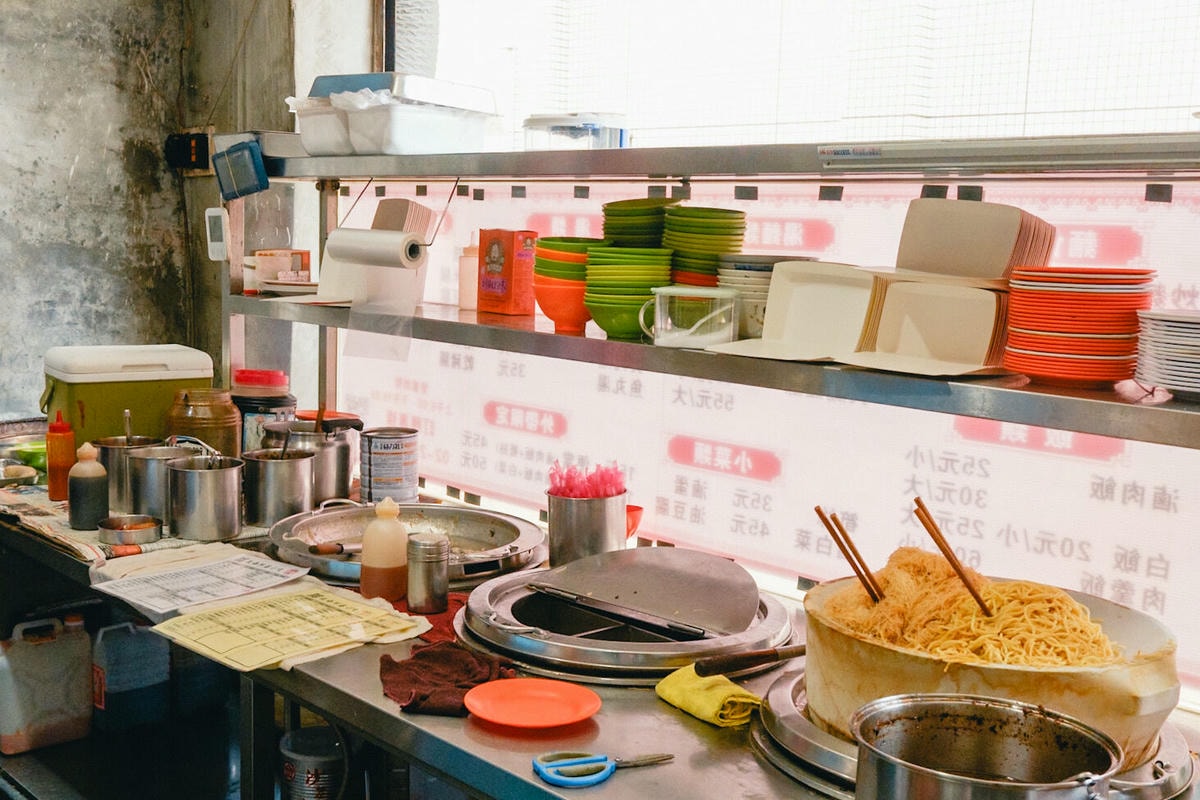 門口外就是烹飪製作區,可以看到古早味的炒米粉和炒麵。也有滷菜可以選擇。