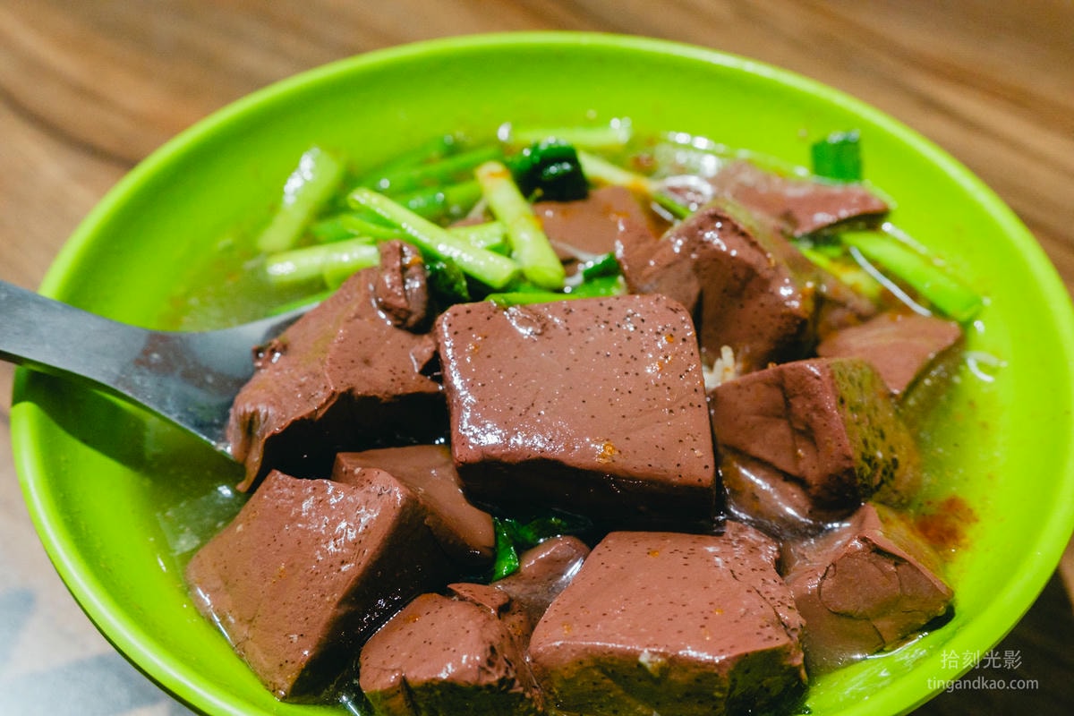 滿滿的韭菜的豬血湯最對味,豬血軟嫩,沒有腥味。湯頭帶點油感,是很標準的古早味豬血湯。