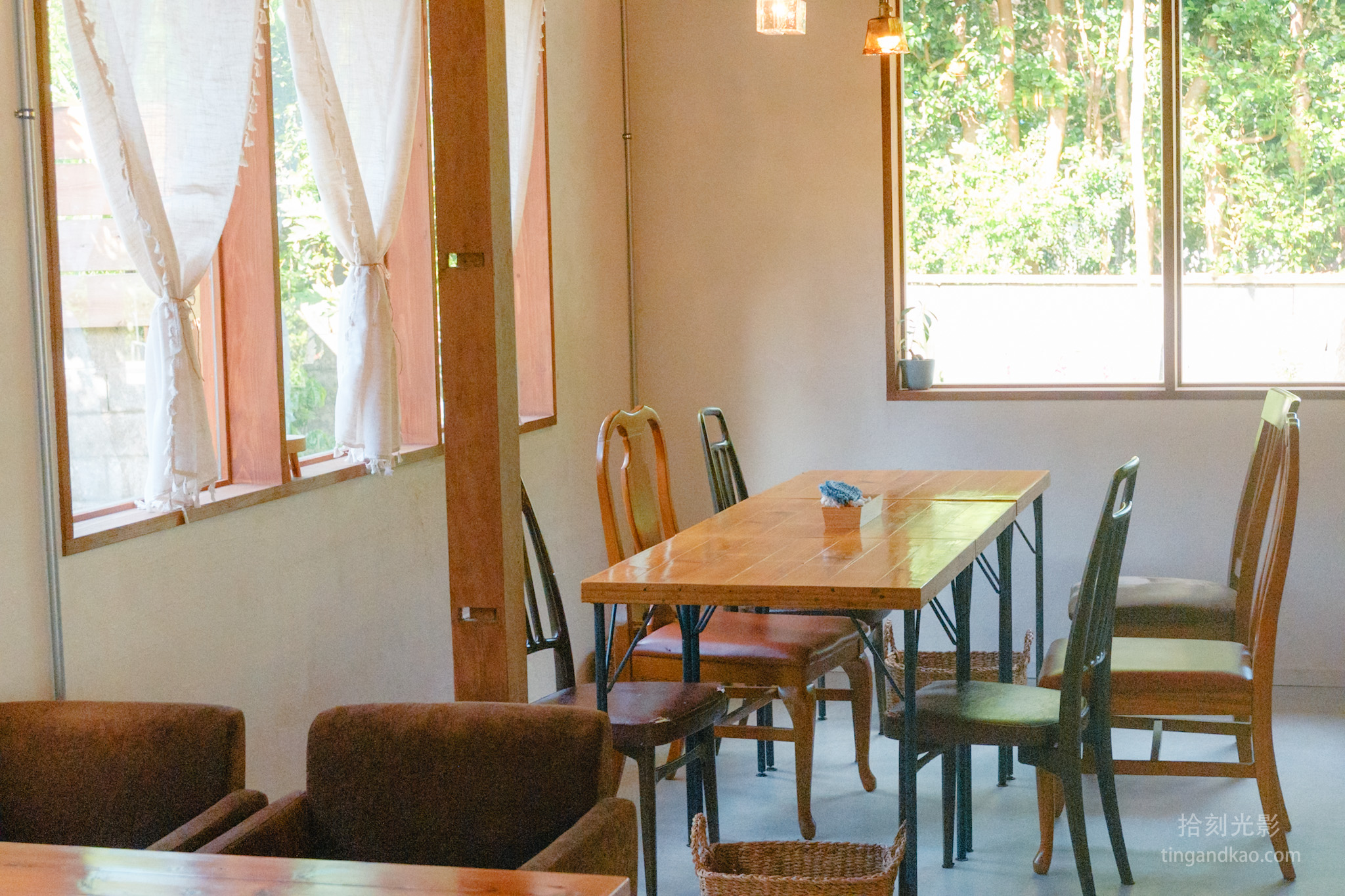 店面是一間平房,裡面的空間比想像中寬敞。店內裝潢日系溫馨,採用木質調搭配白牆的設計。店裡開了許多窗戶,可以看到外面的綠色植栽,環境相當舒適。