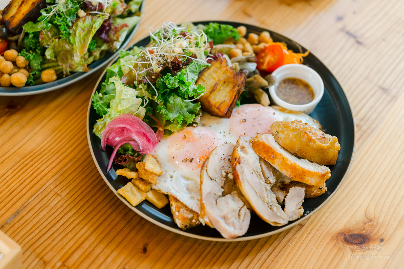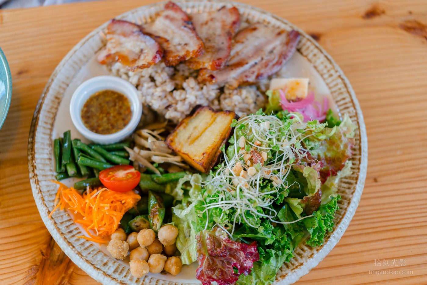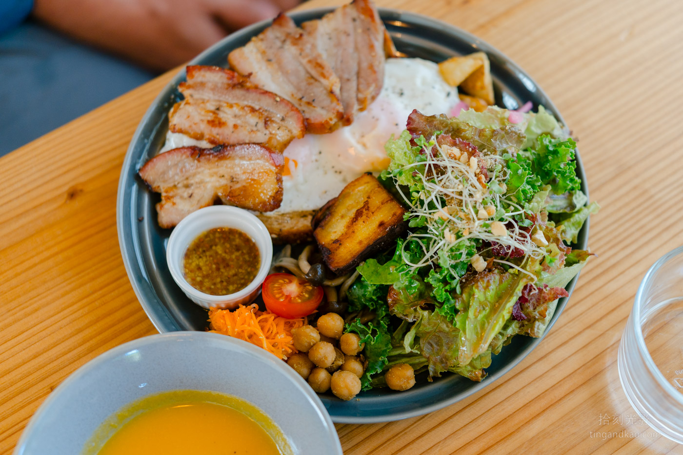 這份餐點讓我們驚艷!滿滿的配料包含蔬菜、菇類、紅蘿蔔、夏威夷果、馬鈴薯、地瓜、荷包蛋和自家製培根,每一種食材都呈現出鮮美風味,調味恰到好處。非常美味,我們都很喜歡這道餐點。
