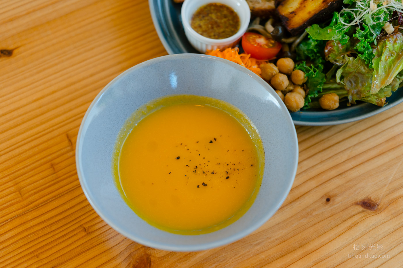 隨餐附贈一碗玉米濃湯,濃湯濃郁細緻,口感滑順好入口。