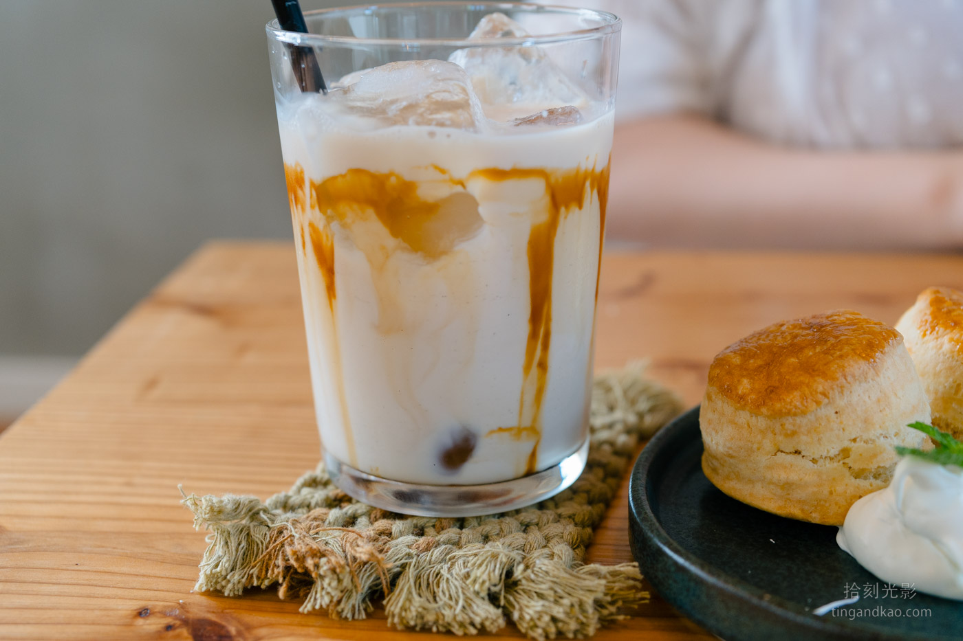 使用沖繩黑糖製作,喝起來甜而不膩、順口好喝。店家使用手工不規則冰塊。