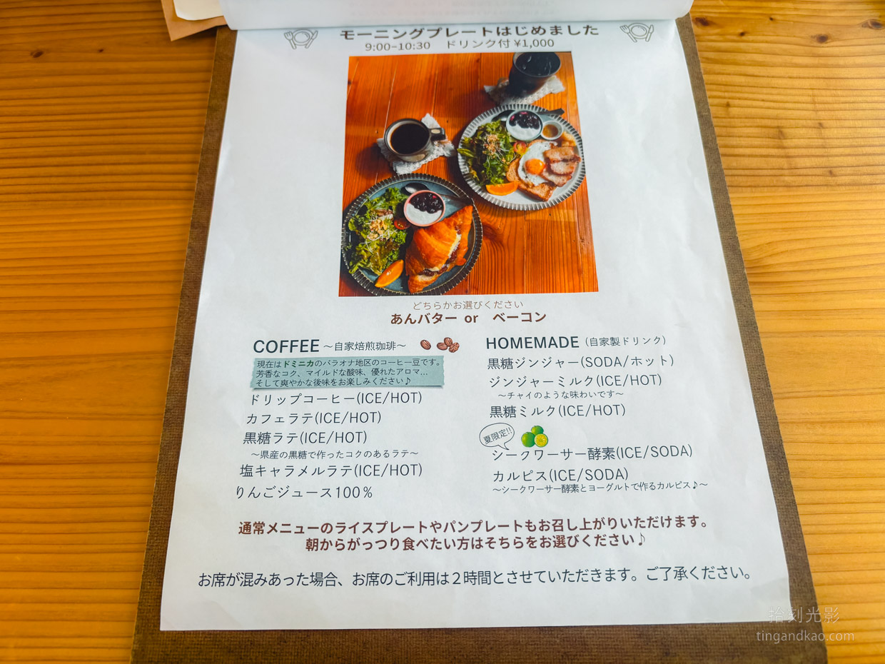 套餐可選擇咖啡或手作飲品,餐點可選擇奶油或培根。