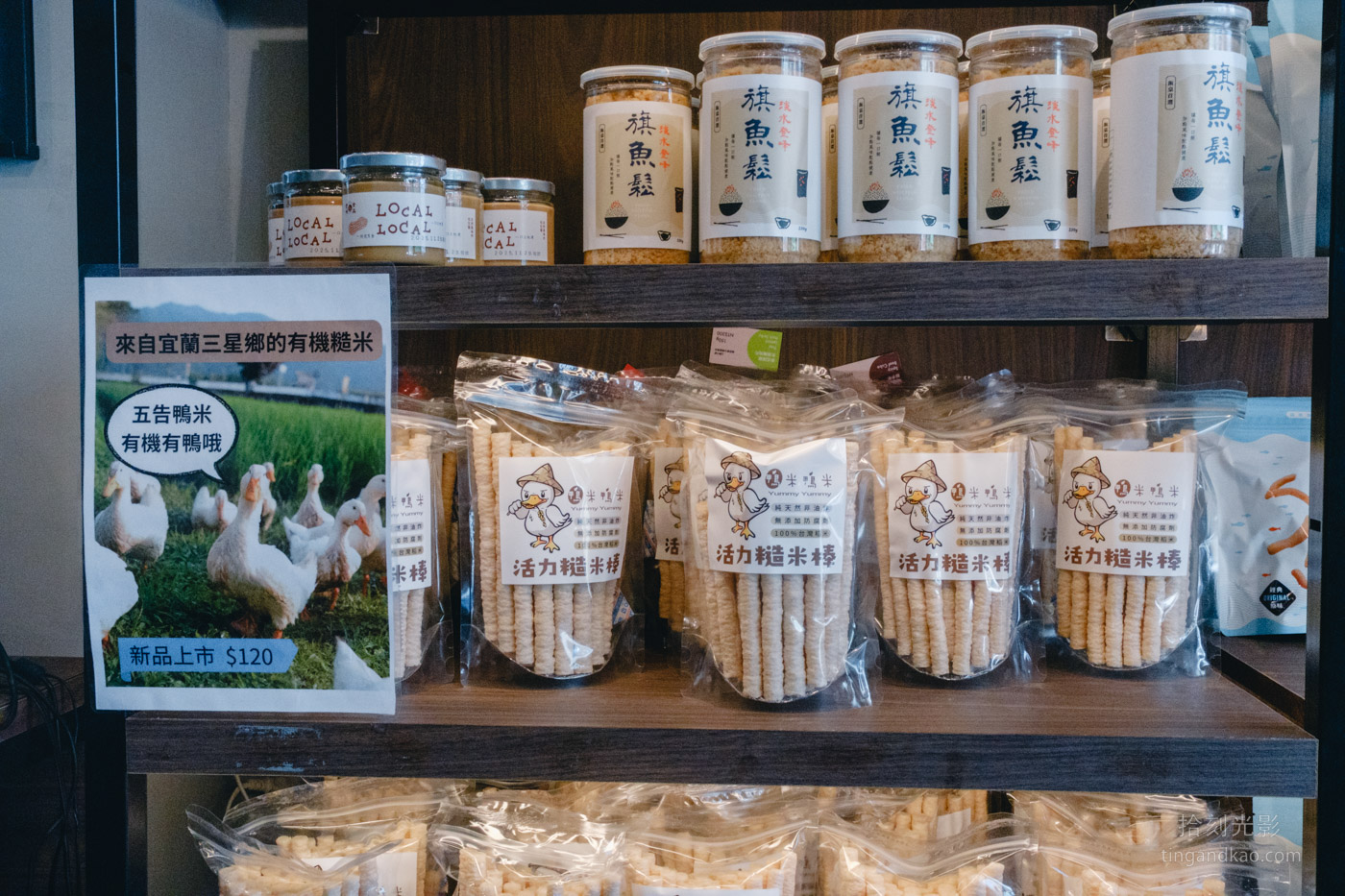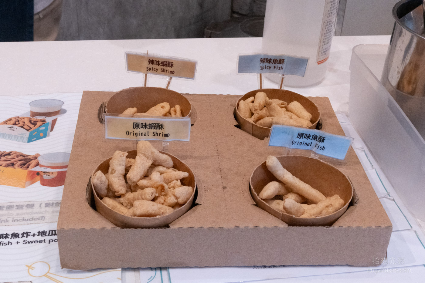 店內也提供冷凍食品選擇,使用新鮮旗魚製作的魚丸,現場可購買熱騰騰的貢丸串立即享用。櫃檯設有魚酥和蝦酥供顧客試吃品嚐。