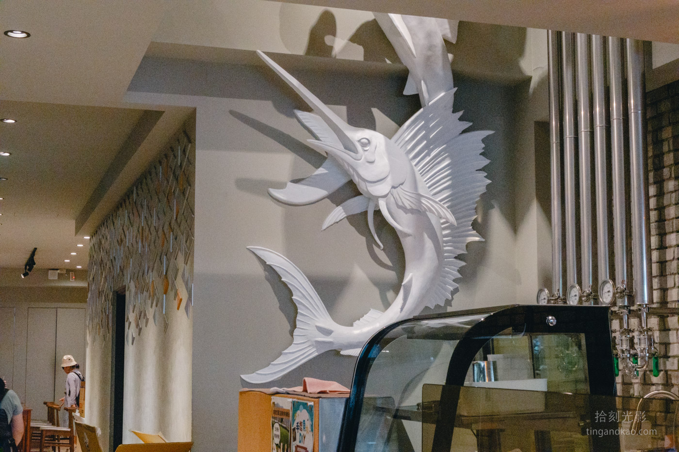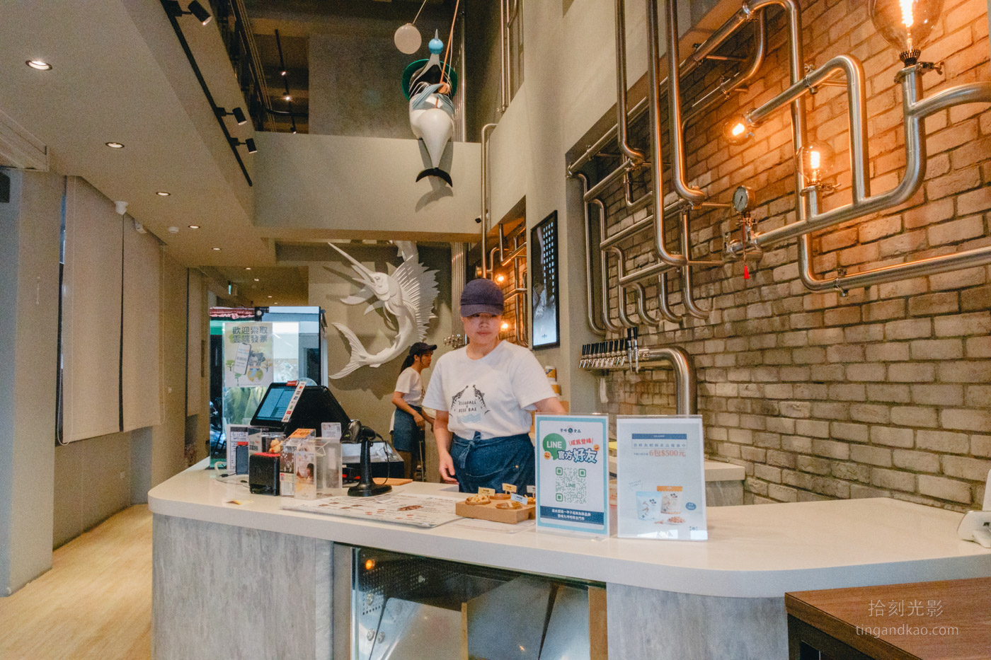獨棟的店面經由改裝後呈現新穎的設計風格,店面採挑高設計,帶有工業風的空間美學。櫃檯旁的精釀啤酒展示設計和純白色的旗魚模型,立即展現登峰魚酥的海洋特色。一樓設有少許座位,二樓座位較為寬敞,一樓展示眾多登峰食品的商品,設置了一整面的伴手禮展示牆。重新設計的產品包裝,適合作為伴手禮餽贈親友,既有心意又顯得體面。