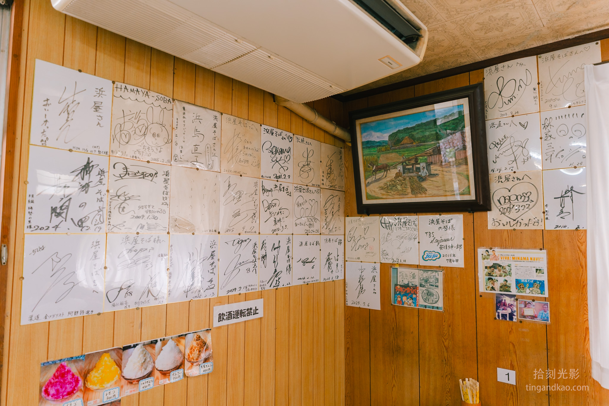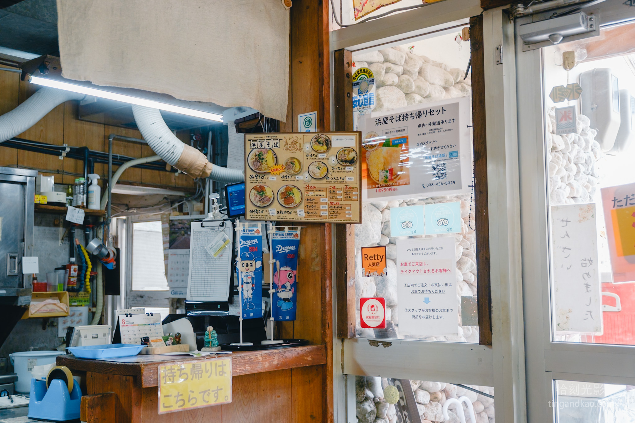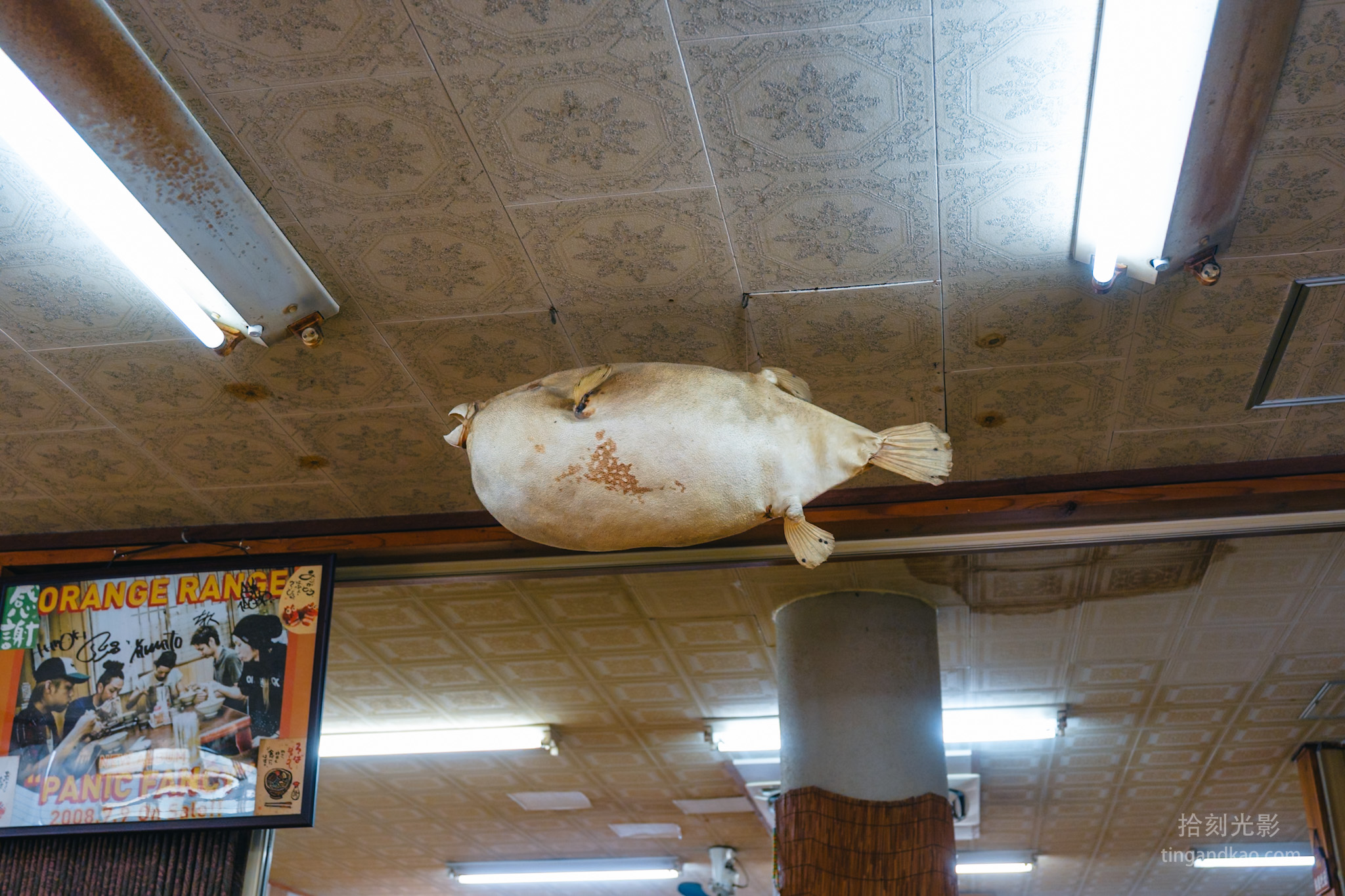 浜屋沖繩麵有30幾年的歷史,因此店內陳列擺設看得出歷史痕跡,但整理得整潔乾淨。天花板上還有河豚模型,牆上也有名人的簽名。