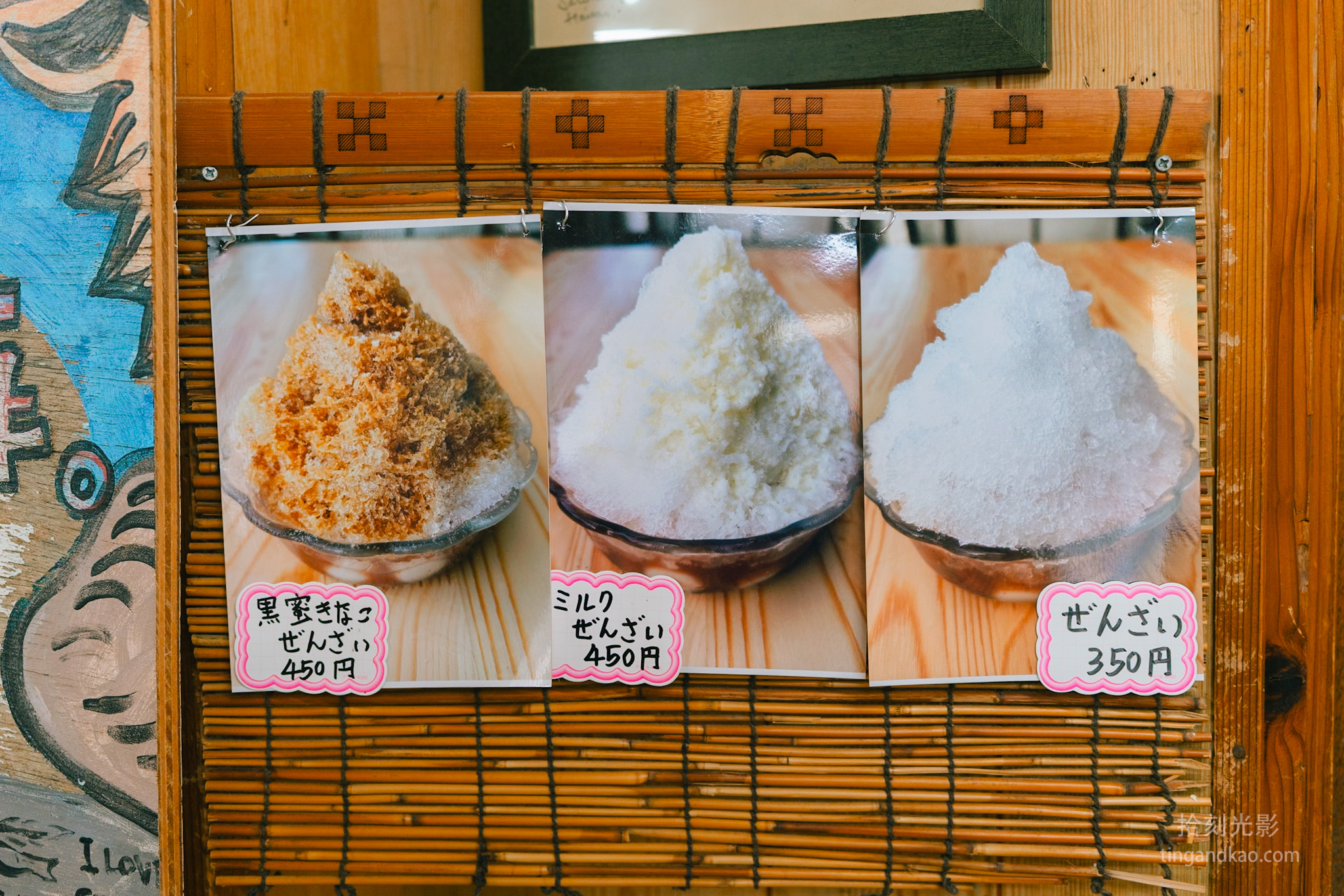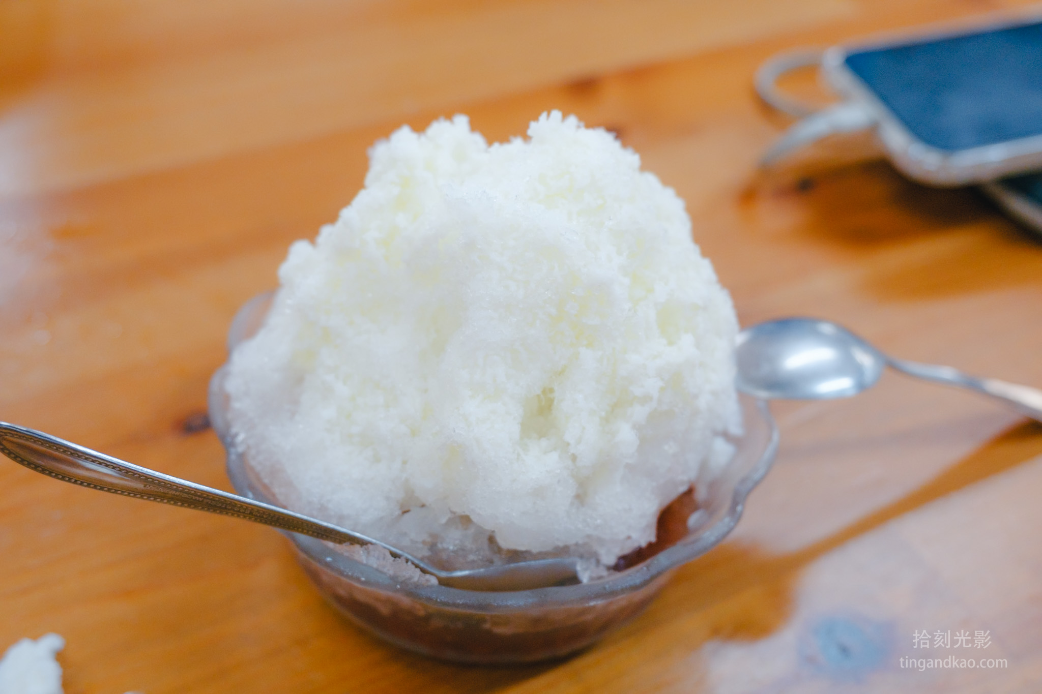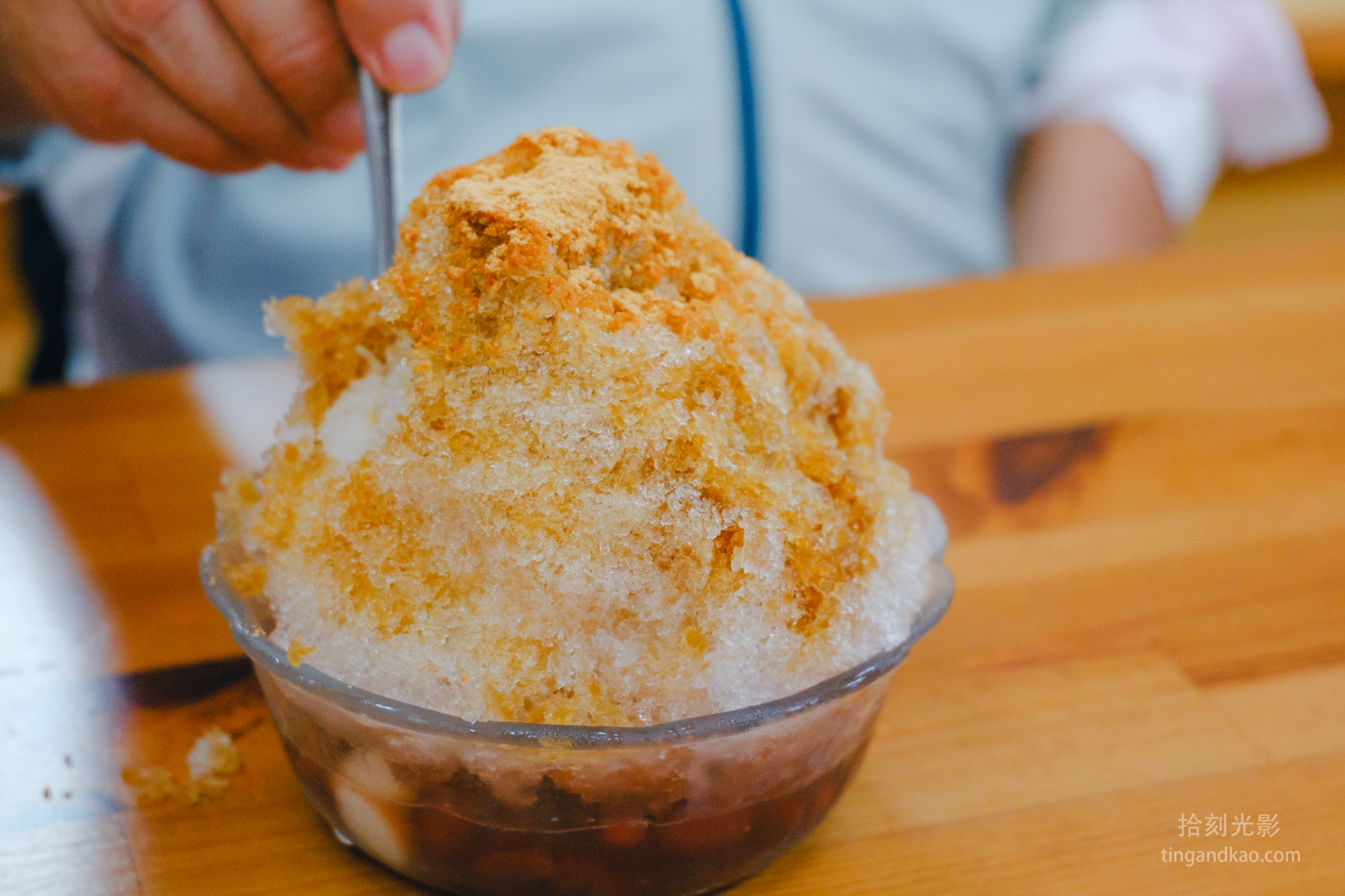 我們點了兩碗刨冰,在炎熱的夏季來上一碗冰涼的冰品,實在消暑。紅豆牛奶冰的配料位於冰底下,堆得高高的冰在吃的時候很容易崩下來,除了紅豆,裡面還有糰子,類似我們的湯圓。