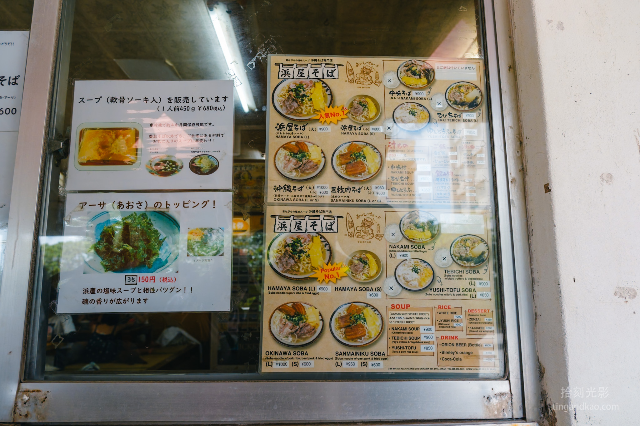 浜屋沖繩麵菜單如下,販售的品項主要以沖繩麵為主,有不同的主菜做搭配,也有綜合品項可以選擇。另外也可以單點肉品和白飯。