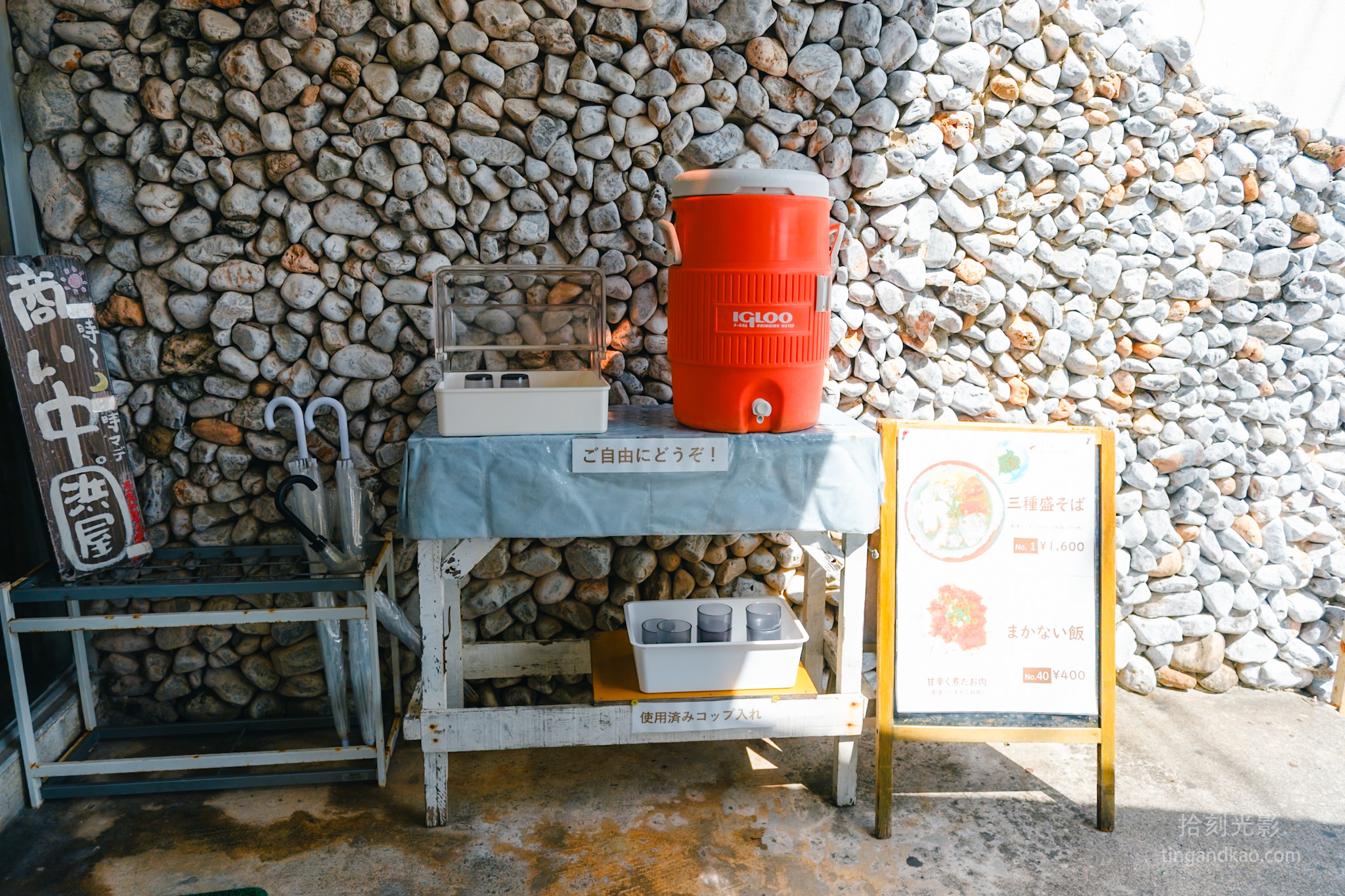店門口有擺放冰水提供排隊的客人飲用,但排隊需要站著候位,店門前雖有屋簷可以遮陽,等太久還是挺熱的。
