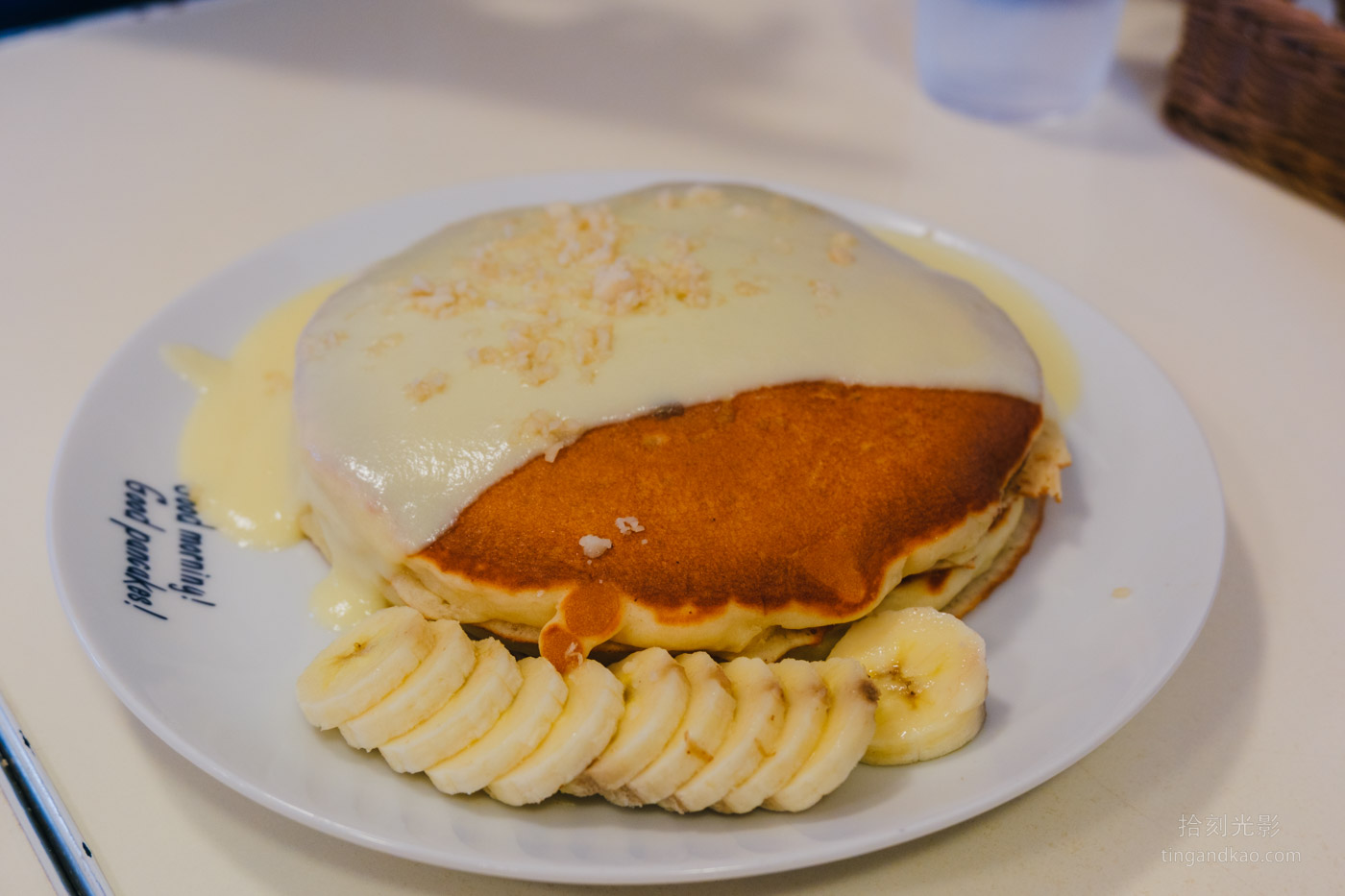 醬汁帶有鹹甜交織的獨特風味,雙層鬆餅吃起來相當幸福,每一口都充滿香蕉和堅果的香氣。不過同樣份量十足,建議與朋友分享。