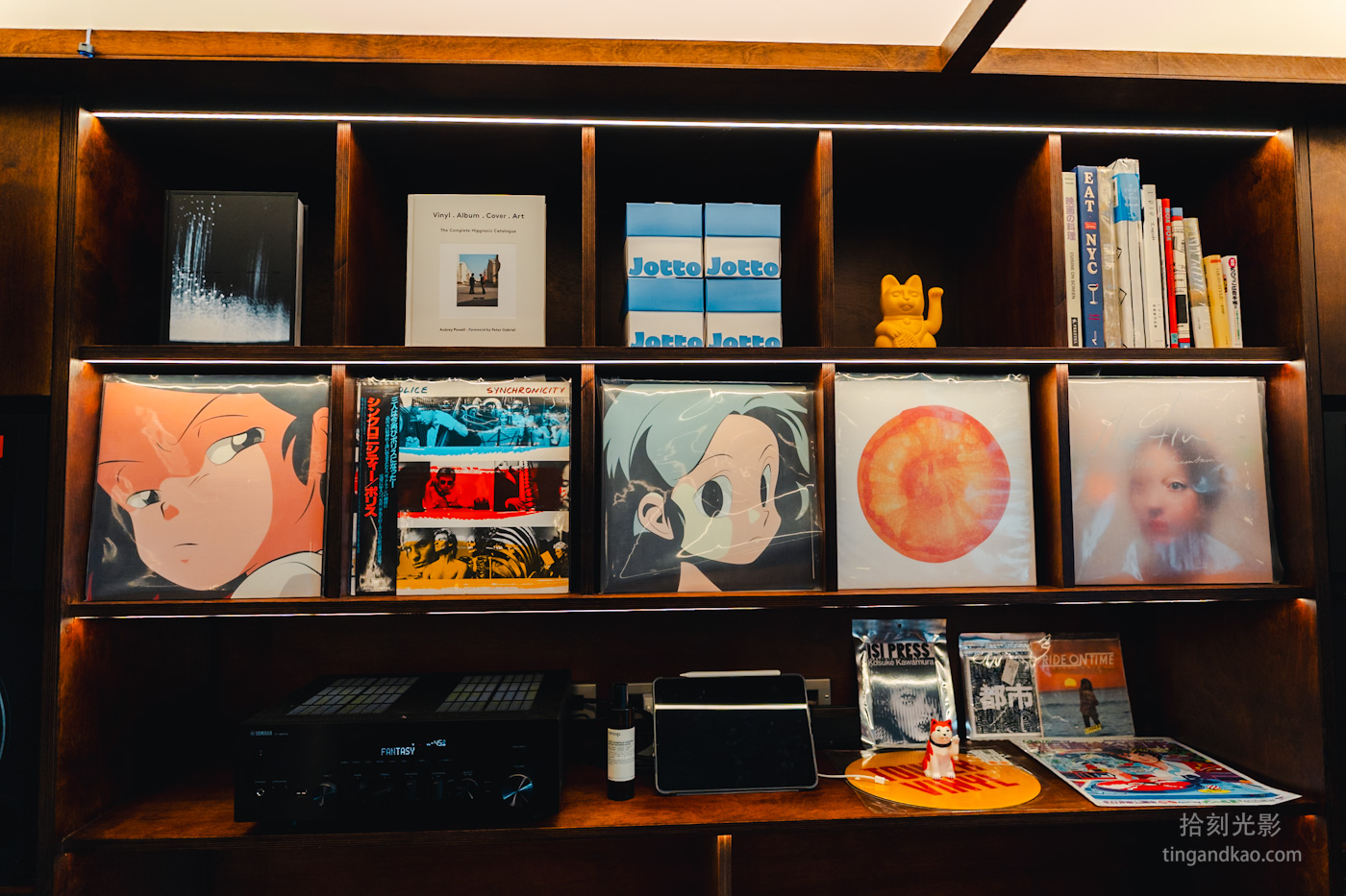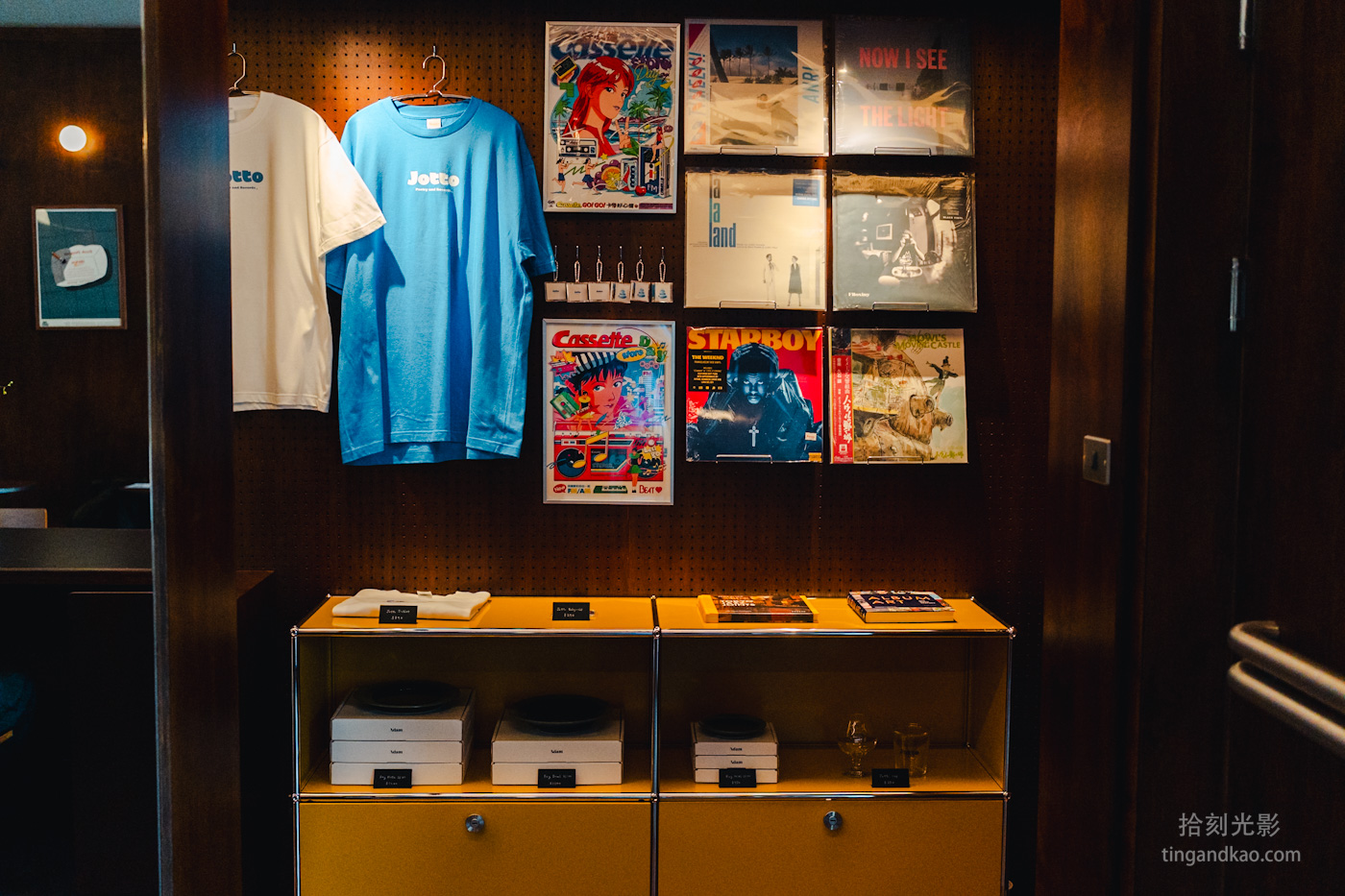 於2025年10月份開幕的JOTTO pastry and records,店面使用木質調裝潢,並規劃一處黑膠展示牆。店內使用黑膠唱片機,並推出店家的自製商品和老闆的選品,可以看出老闆的品味很棒。