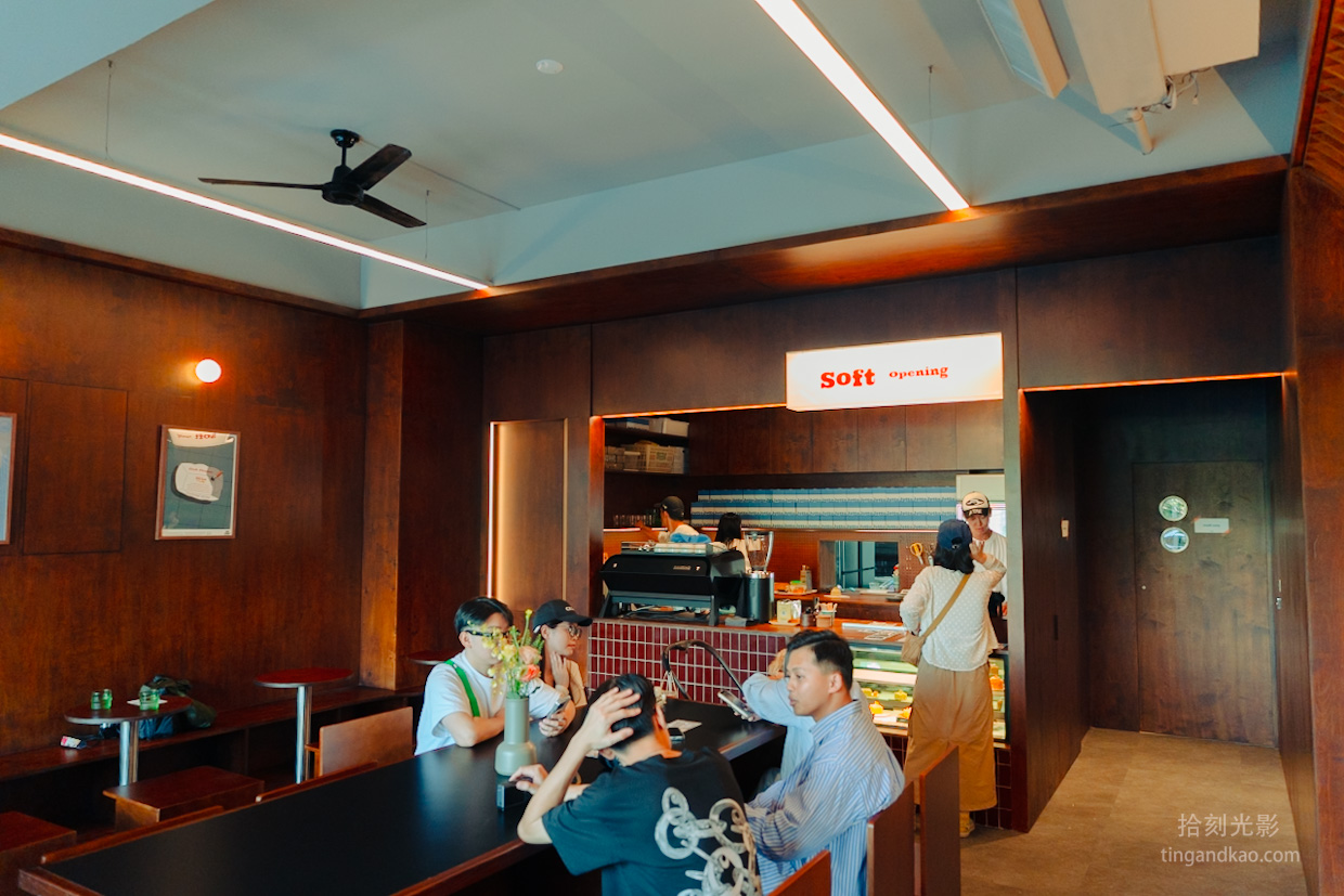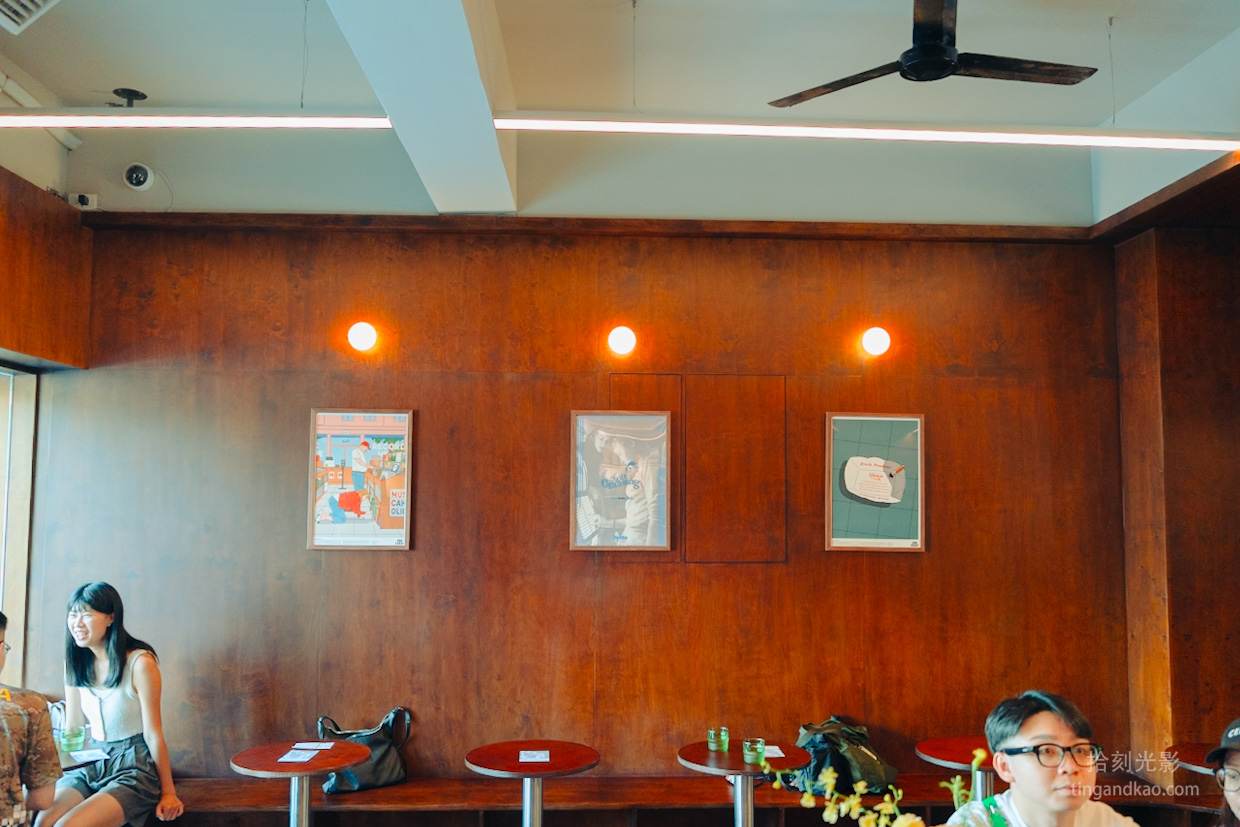 天花板挑高設計讓環境更顯開闊,店裡的座位不算多,有雙人座位和長桌的多人座位。