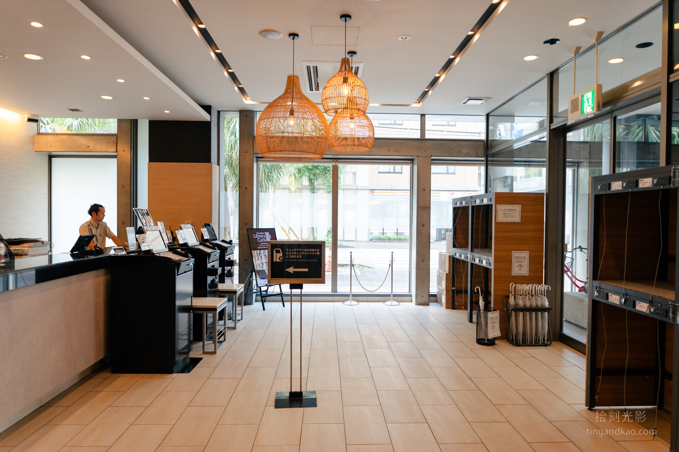 進到大廳後首先會看到櫃台,櫃檯前擺放 3 台自助辦理入住機台,提供中文操作介面,依序操作即可完成入住手續。辦理完成後,飯店人員會簡單介紹飯店空間配置和早餐時間等資訊,流程快速便利。