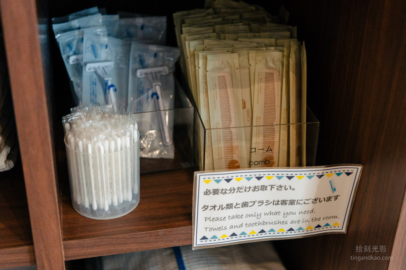 櫃台旁設有備品區,提供各式備品和浴衣供房客自行取用,可依個人需求拿取所需的用品。