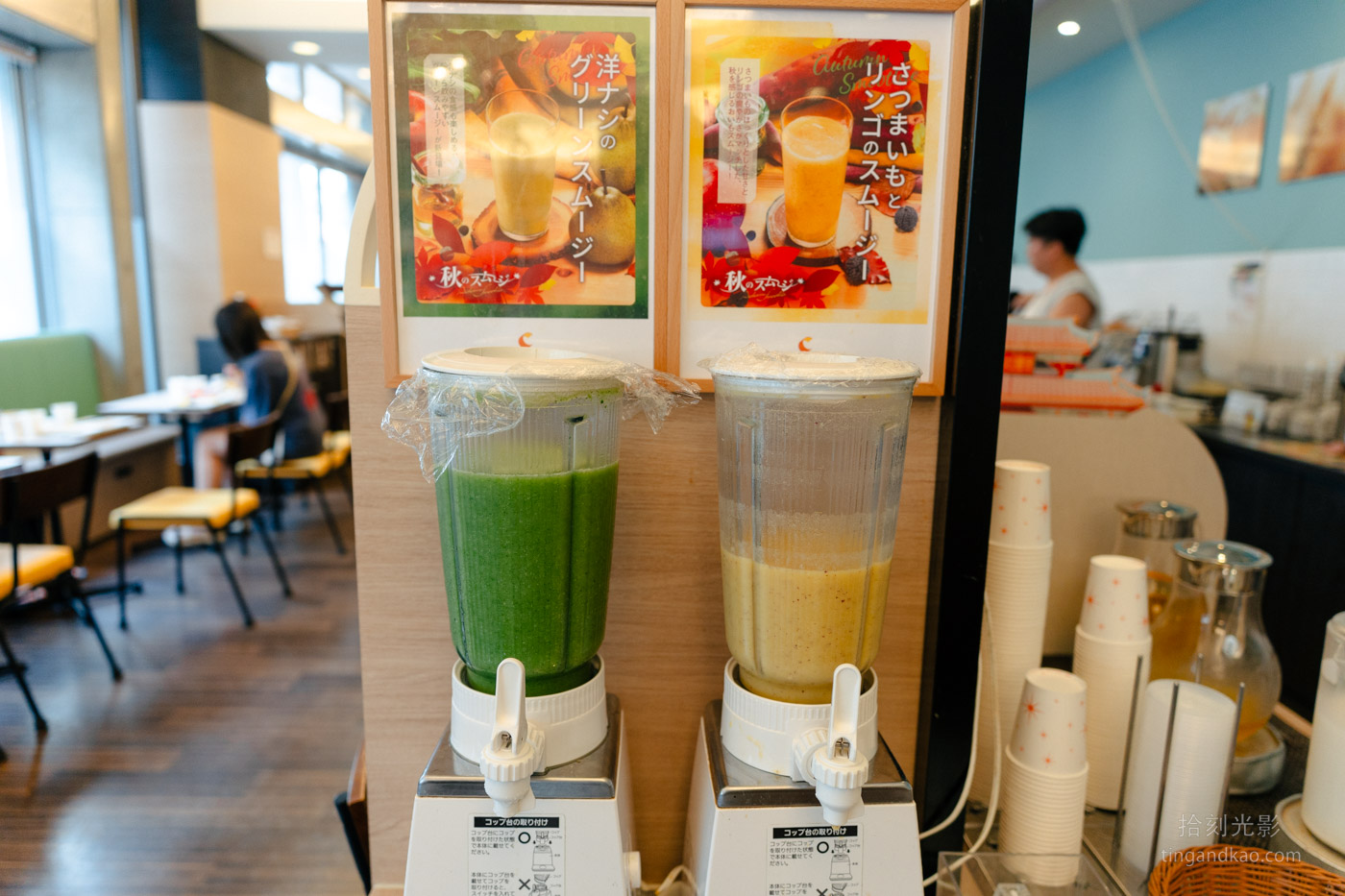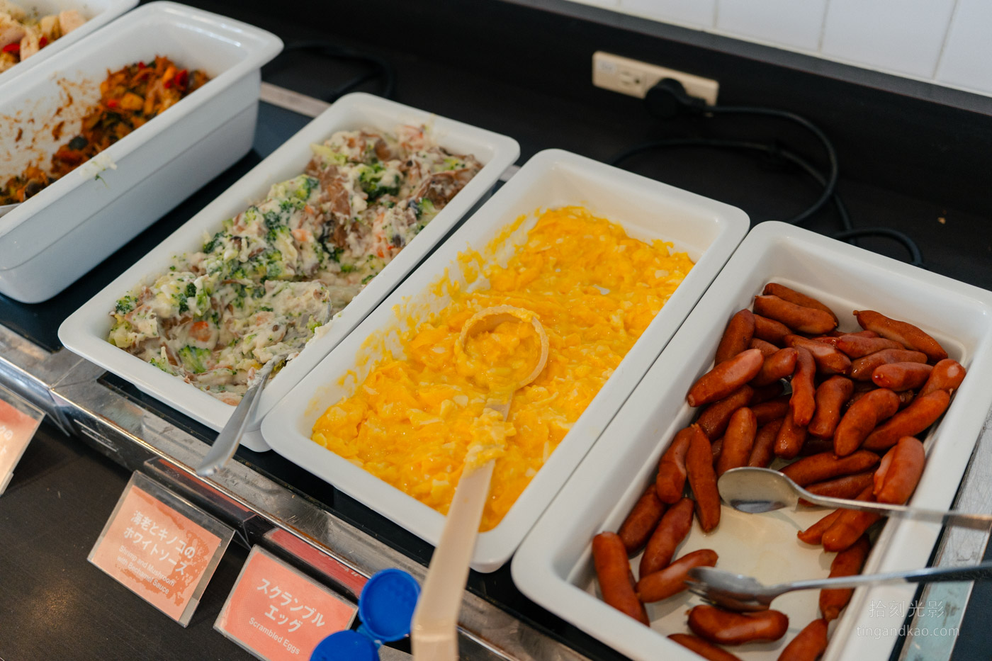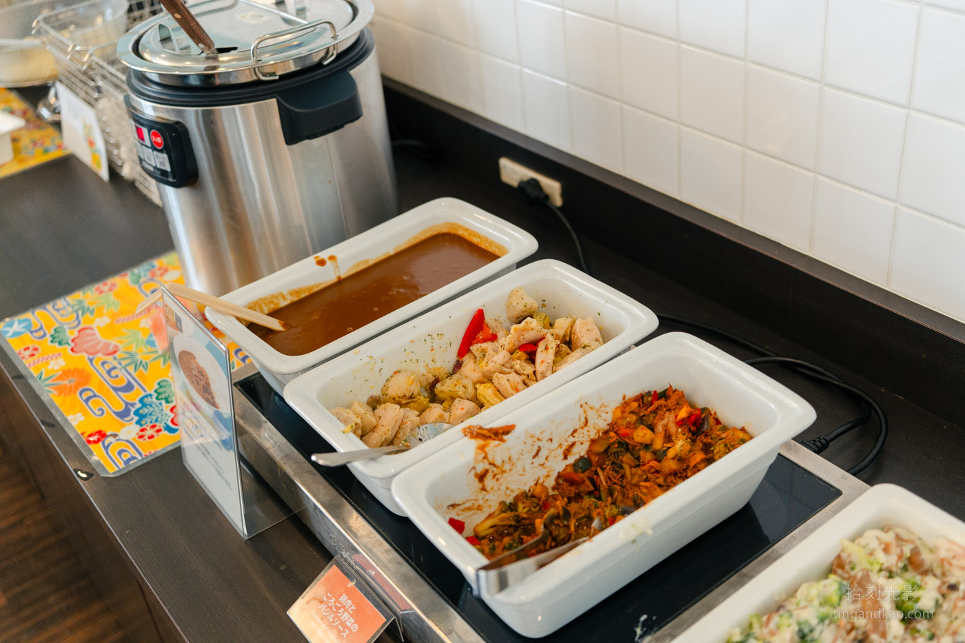 Comfortable Hotel 附有免費早餐,非常超值。每日用餐時間為 6:30-9:30,菜色選擇豐富多樣,包含歐姆蛋、蔬菜馬鈴薯泥、雞肉料理、各式蔬菜、咖哩飯、味噌湯、麵包等主食。飲品方面提供現打蔬果汁、咖啡和牛奶。整體餐點雖不算特別精緻,但營養均衡且份量充足,能讓旅客吃飽後開啟一天的行程。