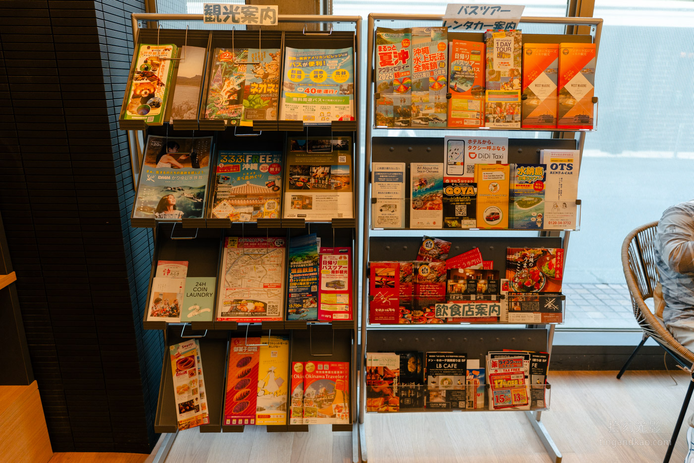 飯店內提供豐富的觀光資訊和旅遊 DM,包含沖繩各景點介紹、交通資訊等,房客可以自由拿取,方便規劃行程。