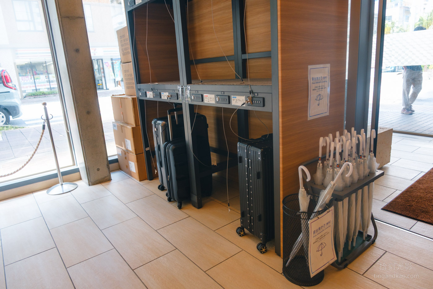 飯店門口旁設有行李箱尺寸的置物櫃,若還未到入住時間,想要先寄放行李再到附近逛逛的旅客可以多加利用,相當方便。