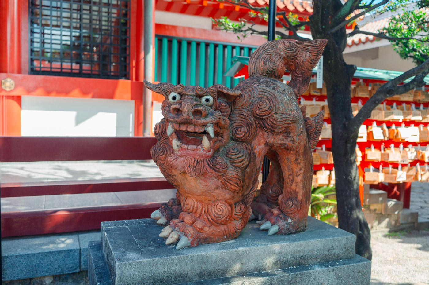 波上宮的石獅子採用沖繩當地特色的風獅爺造型。