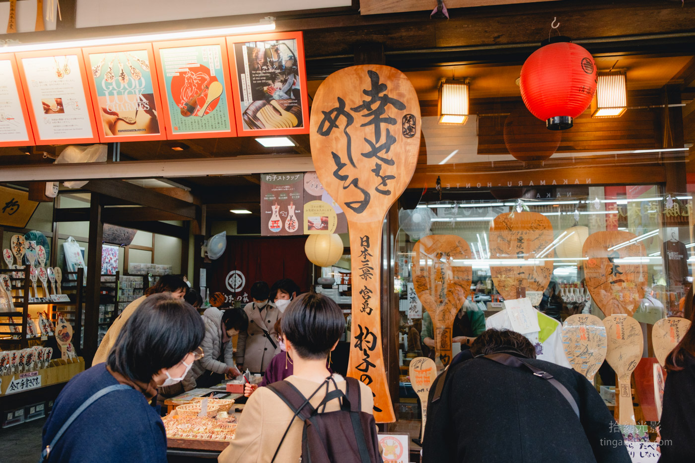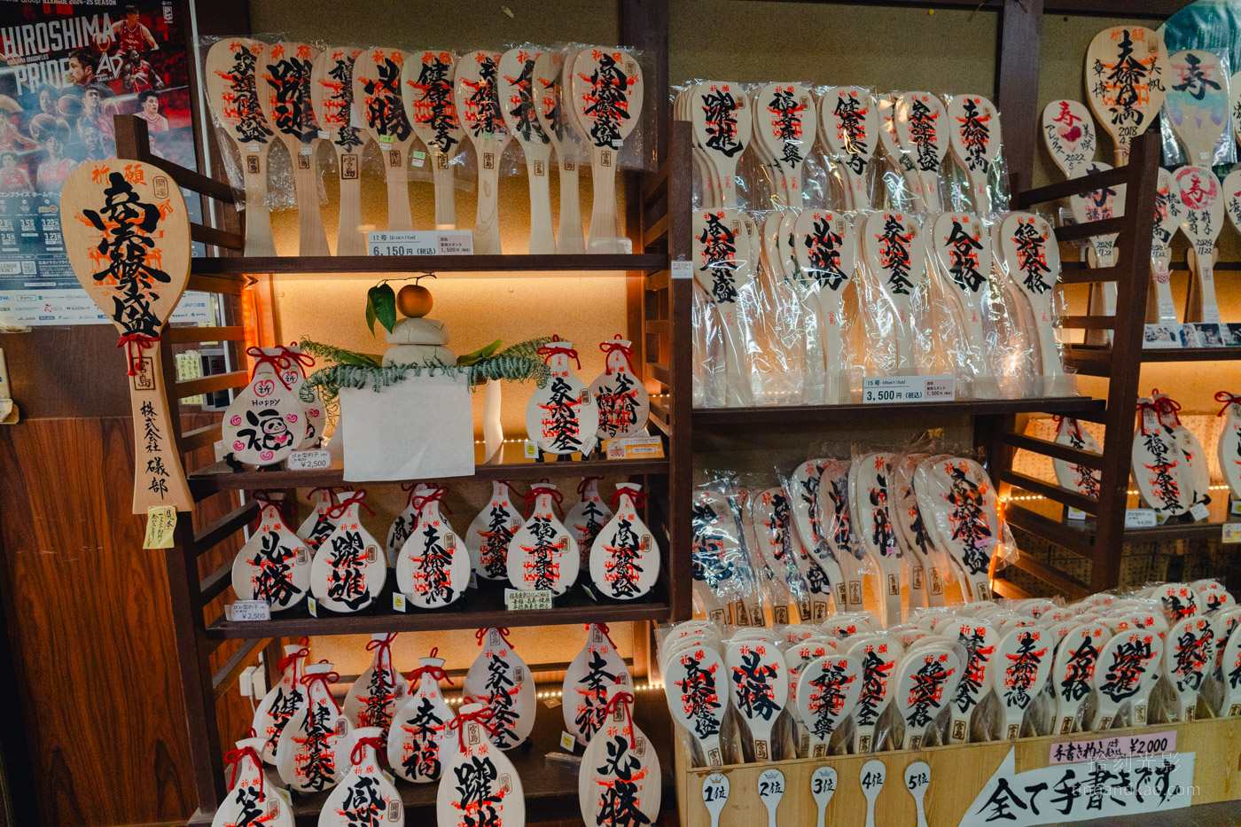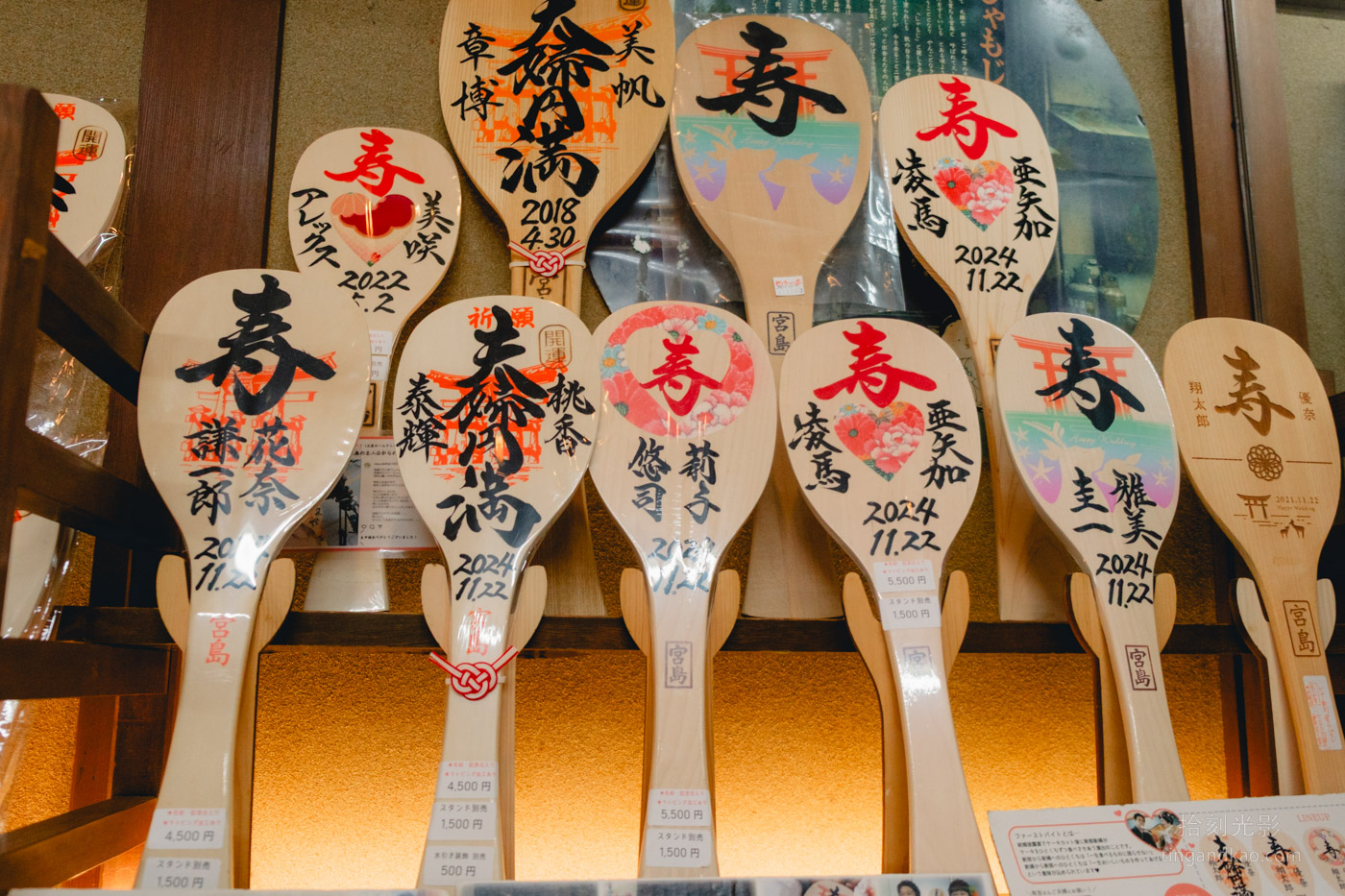 來到宮島表參道商店街,別錯過杓子之家。在這裡可以挑選具有紀念和祝福意涵的伴手禮,還能客製化寫上專屬姓名,非常適合送禮。