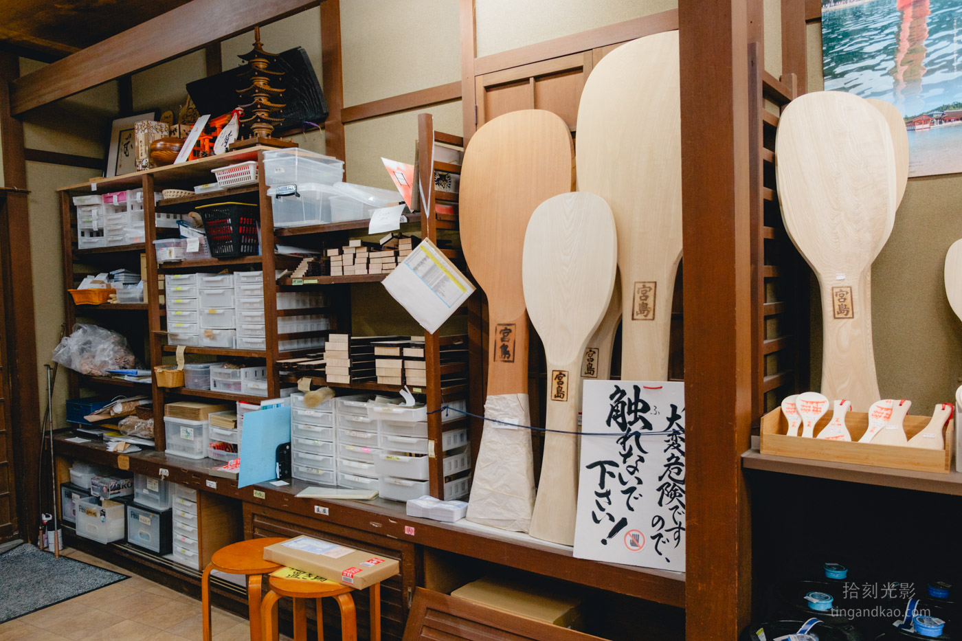 飯勺象徵招福和勝利,成為宮島代表性特產。杓子之家提供客製化服務。