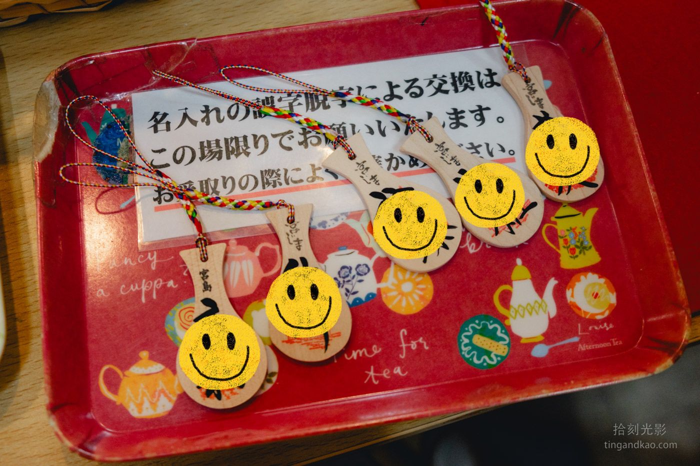 在不同尺寸的飯勺上印有各式圖案和祝福文字,就像御守的概念,可以祈求健康、事業順利、心情愉快、生日祝福等。