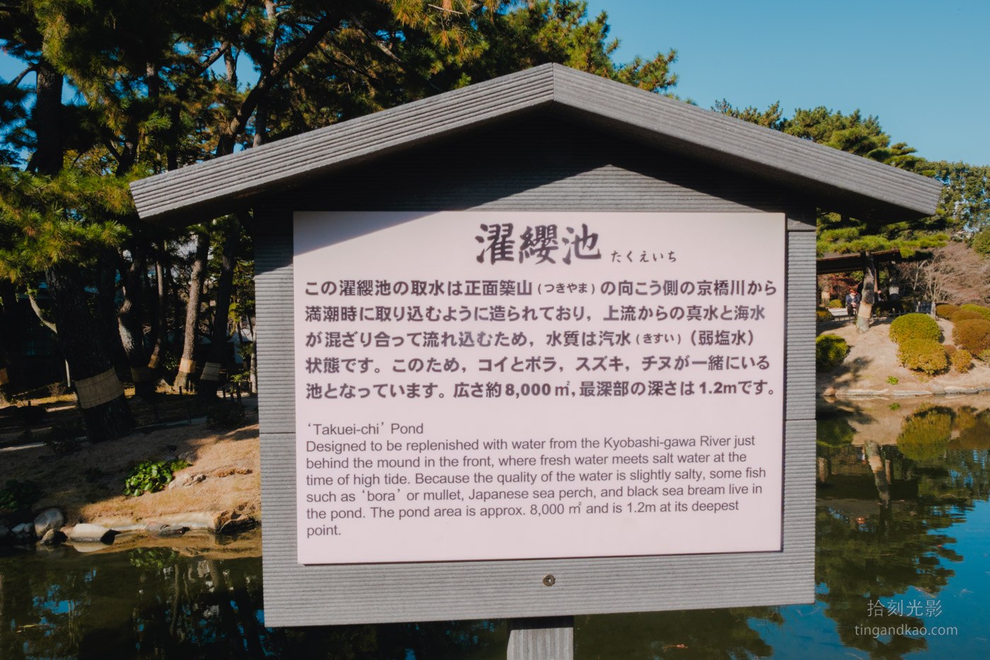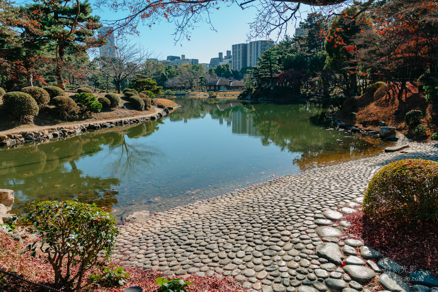 縮景園為迴遊式庭園,主要環繞中心的大水池而建。園區規模適中,悠閒漫步並拍照記錄,繞行一圈約需一小時。