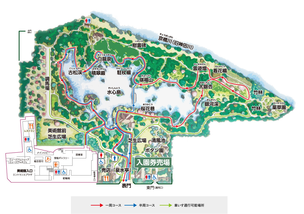 精緻的庭園景色穿插小橋流水和植物,被列為日本名勝百選。